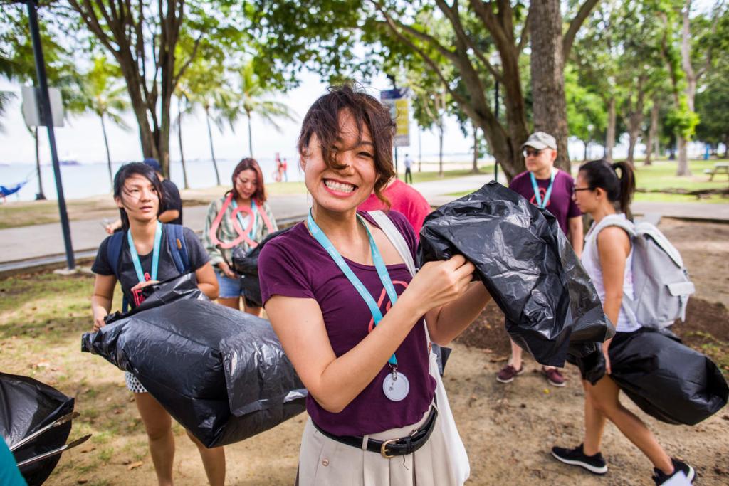 Airbnb employees in Singapore cleaned up a local park and beach.