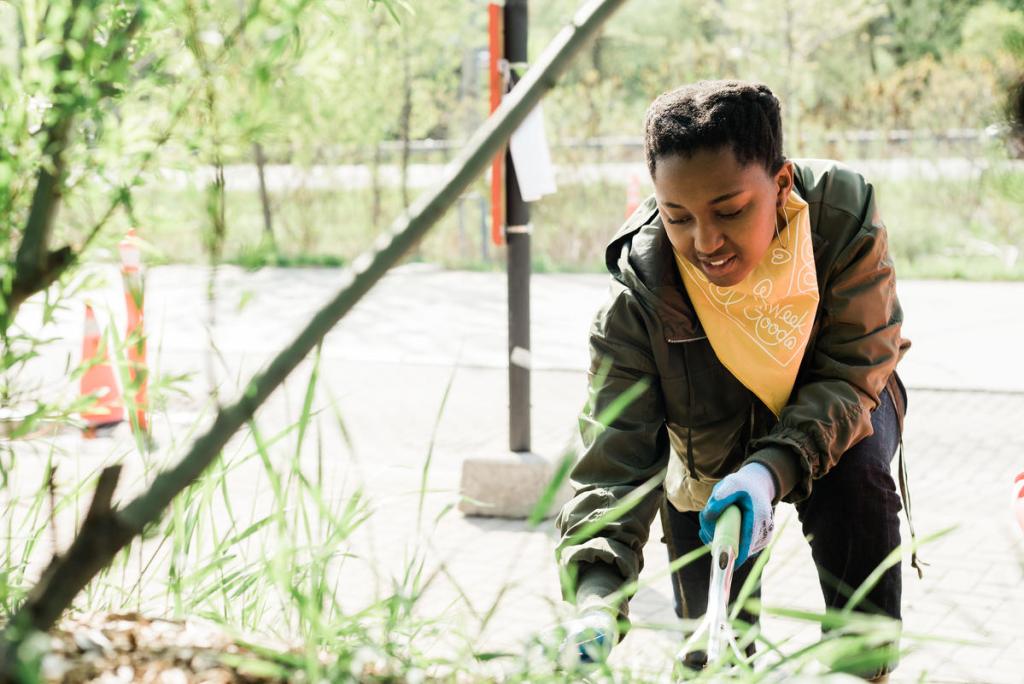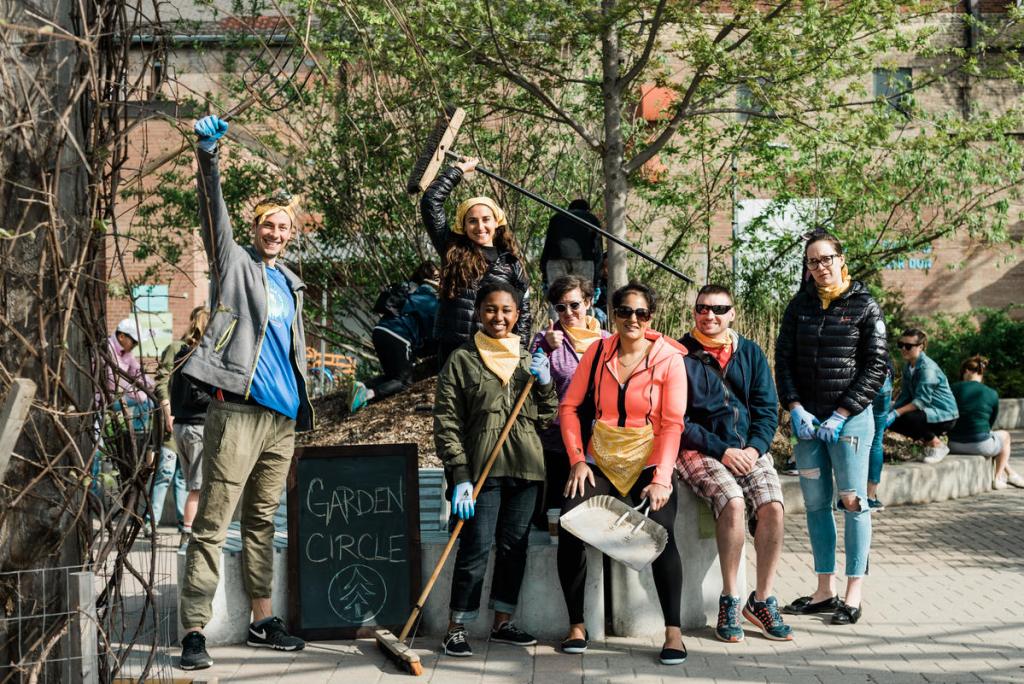 Airbnb employees in Toronto beautified their neighborhood in Garden Circle by cleaning up trash and weeding.