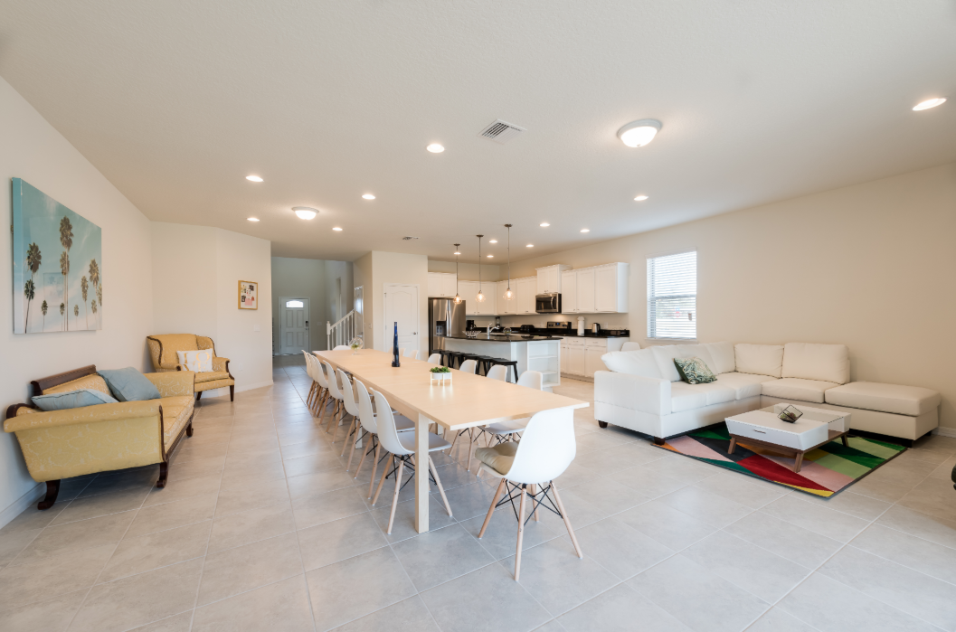 Come one, come all! If you are planning a large family reunion, this spot in Florida conveniently sleeps 20. Families will love the themed bedrooms with bunk beds, expansive dining room table, and playroom equipped with toys, a highchair, and a stroller.