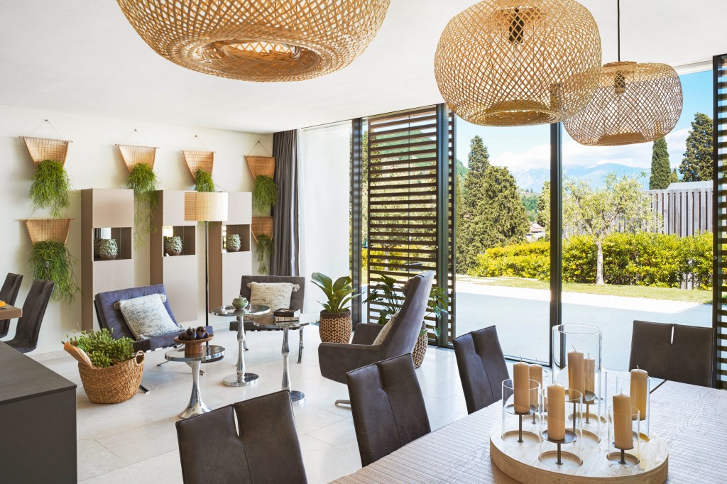 Parte de um complexo de vilas de luxo projetadas pelo arquiteto italiano Matteo Thun, esta impressionante residência apresenta linhas e espaços limpos que se misturam com a natureza circundante graças às suas janelas do chão ao teto. Capacidade: 6 hóspedes
