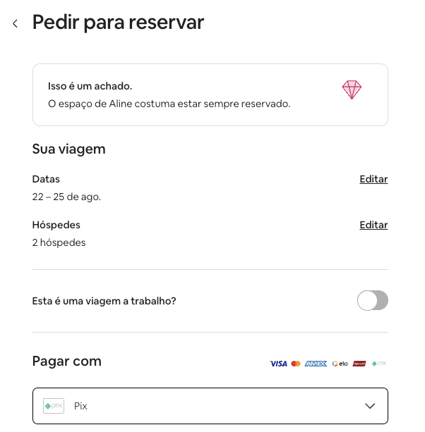 - Para visualizar o Pix como forma de pagamento de uma reserva, o hóspede deve atualizar o aplicativo do Airbnb para a versão mais recente.