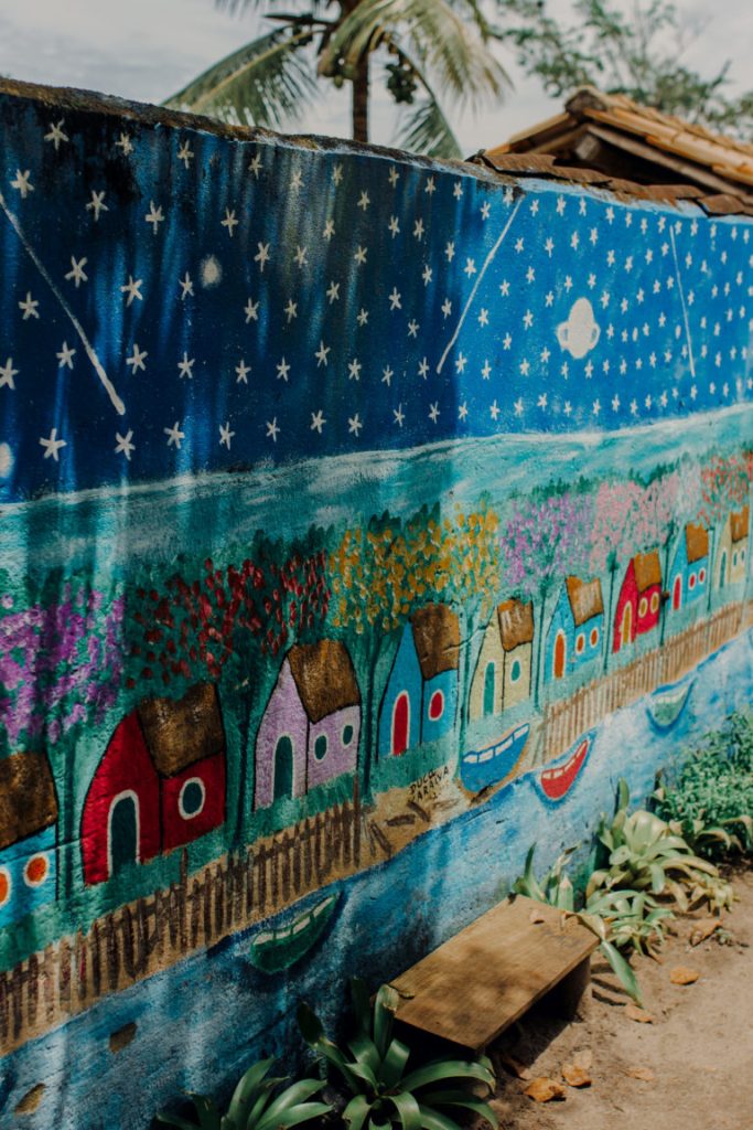 A vila conserva rusticidade e ares sossegados que cativam rapidamente quem faz a travessia de canoa para desembarcar ali. Localizada numa pequena península no encontro do Rio Caraíva com o mar, ela se organiza por quarteirões extensos de areia fofa (não há asfalto nem terra, somente areia), casinhas multicoloridas e esquinas adornadas pelas pinturas da artista Duca, também dona de um conhecido restaurante vegetariano, um dos grandes ícones locais. Tudo isso para além de mangueiras, amendoeiras e jambeiros que produzem boas sombras o ano todo.