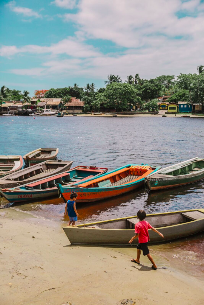 Na Praia da Barra, ou onde o rio encontra o mar, as árvores fazem boas sombras e as canoas agitam as águas, que aqui são especialmente mais turvas. Algumas cabanas vendem comidas, mas a maioria delas oferece apenas lanches rápidos, como sucos, tapiocas e empanadas, para quem vier passar o dia.