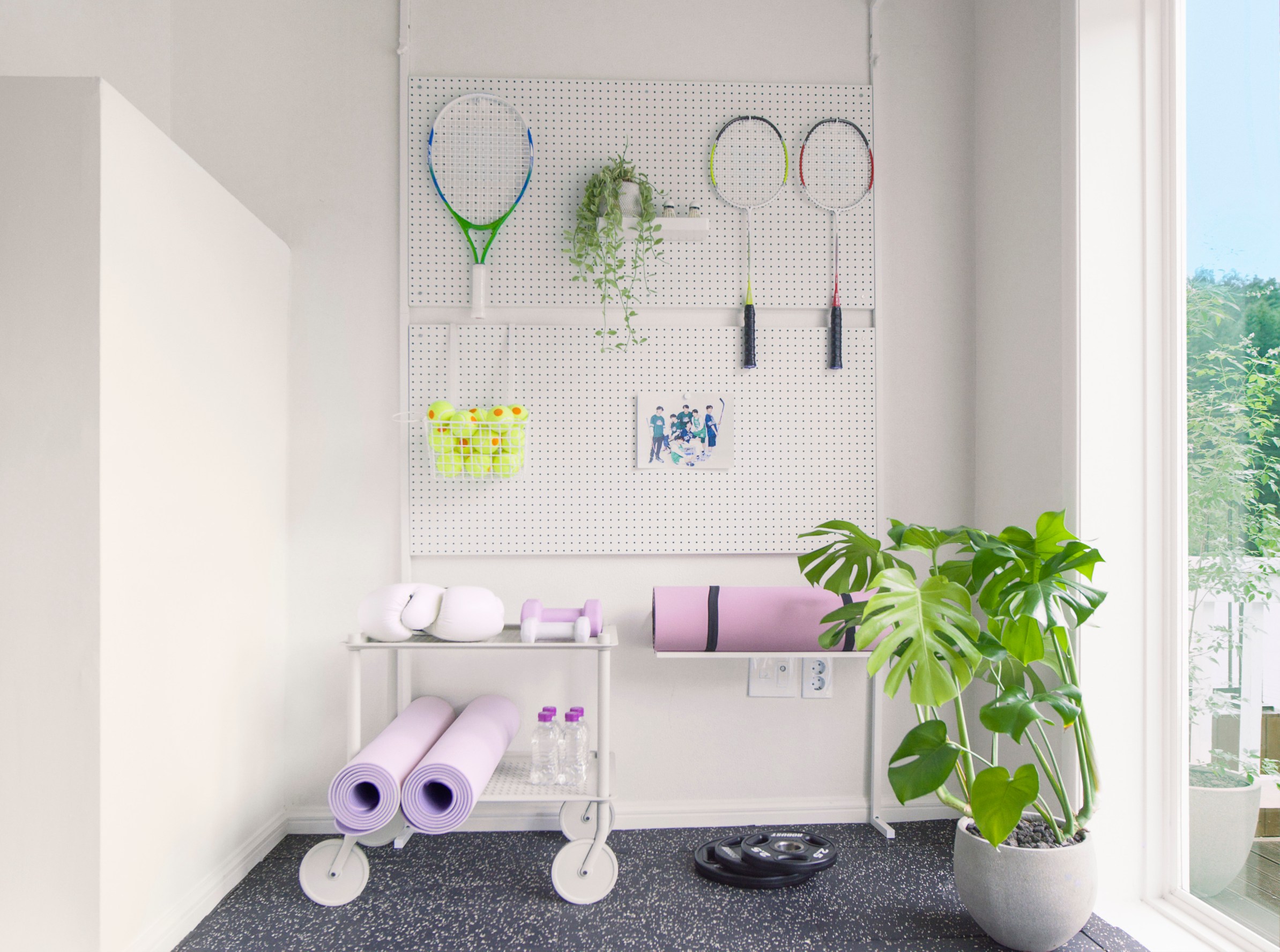 - Para quem gosta de gastar energia, é possível fazer musculação, como Jimin, voar alto em um trampolim, como Jungkook, ou ainda quicar uma bola na quadra de basquete, como Bam, o cachorro de Jungkook