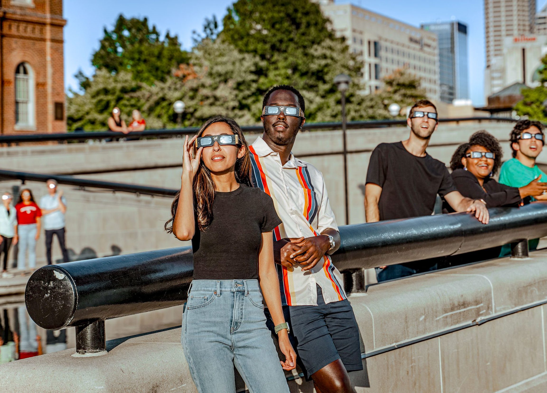 Group of people smiling and walking