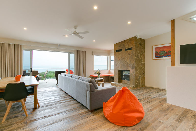 On Phillip Island, famous for its Little Penguins which wander onto shore every evening, this beachfront architect-designed home has sweeping views across the ocean and is ideal for families or large groups. The ground floor has an accessible roll-in shower with a spacious bedroom, and a outdoor deck with a ramp to the gardens. Host Debra can provide a stair chair/chair lift on request, so guests with a mobility issue can also access the upper floor.