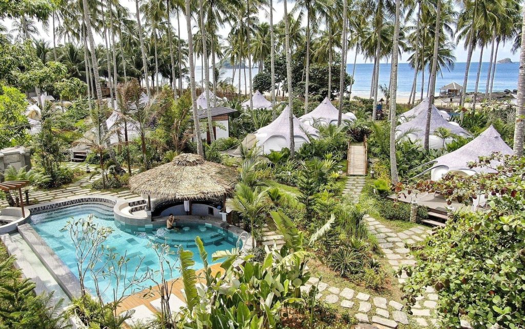 Located just a few meters from El Nido’s world-famous white sand beach, these glamping tents provide guests with easy access to clear blue waters and jewel-hued sunsets – perfect for a mini family photoshoot. The entire property boasts gorgeous landscaping of over 300 trees and 3,000 small shrubs, and each tent is fitted with state-of-the-art furnishings and plush beds. If you’re lucky, your tent may even come with its own private pool!