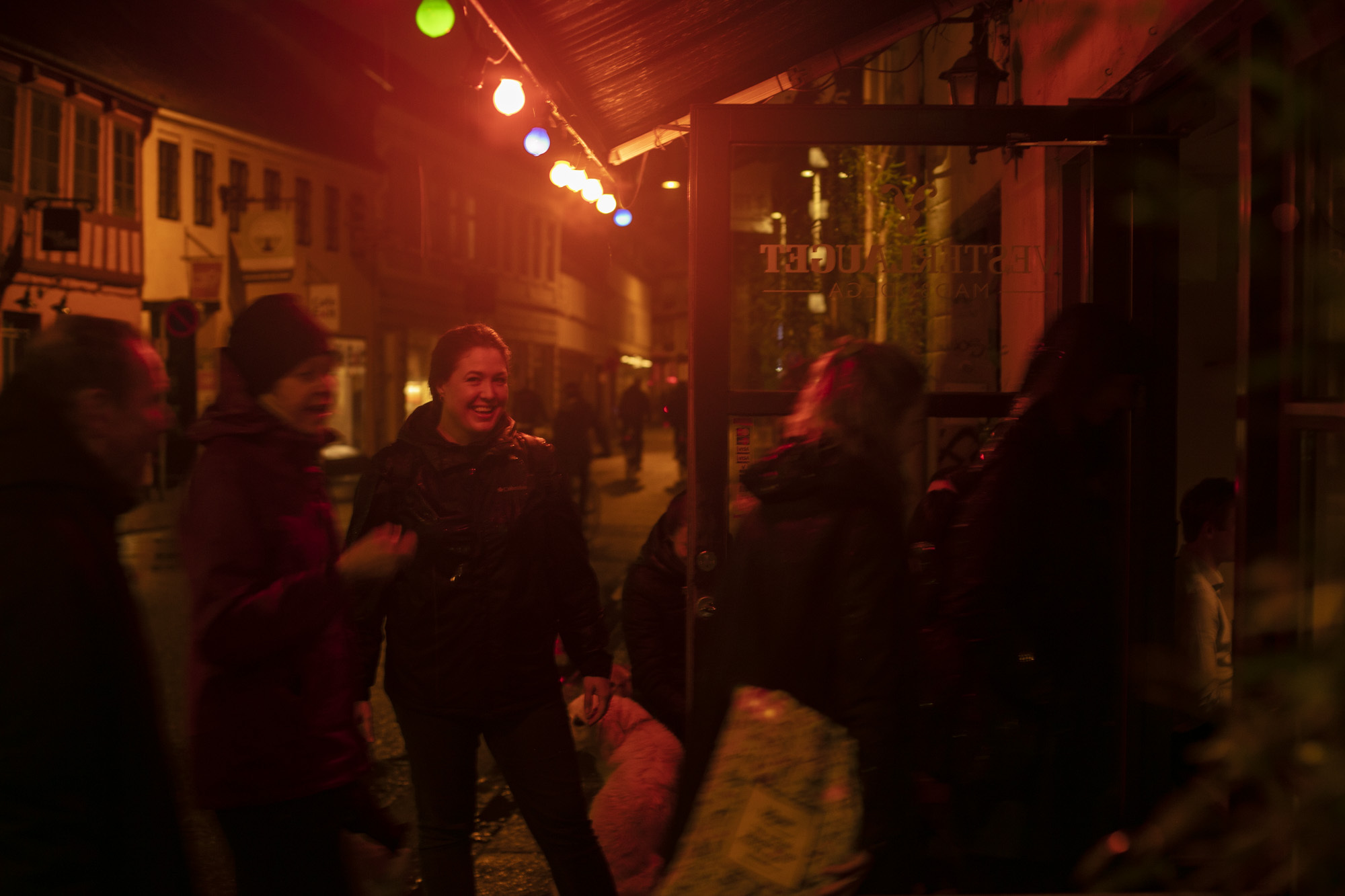 Sidste stop på byvandringen var Vesterlauget, en lille madbodega, som serverer morgenmad, frokost og én ret til aftensmad. Den hyggelige indretning dannede den perfekte ramme for værterne at lære hinanden at kende over en drink og dele deres lokale Aarhus-tip med hinanden.