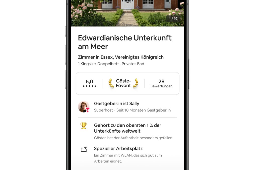 In diesem Sommer führen wir darüber hinaus ein neues Highlight ein, das auf Bewertungen und Zuverlässigkeit basiert – es soll dazu beitragen, dass Top-Inserate aus der Masse herausstechen: Inserate mit Bewertungen, die zu den obersten 25 Prozent weltweit gehören, werden mit einem besonderen Highlight auf ihrer Inseratsseite gekennzeichnet. Und die obersten 1 Prozent erhalten ein Trophäen-Symbol, um deutlich zu machen, dass dies nach Meinung der Gäste die weltweit besten Unterkünfte auf Airbnb sind.