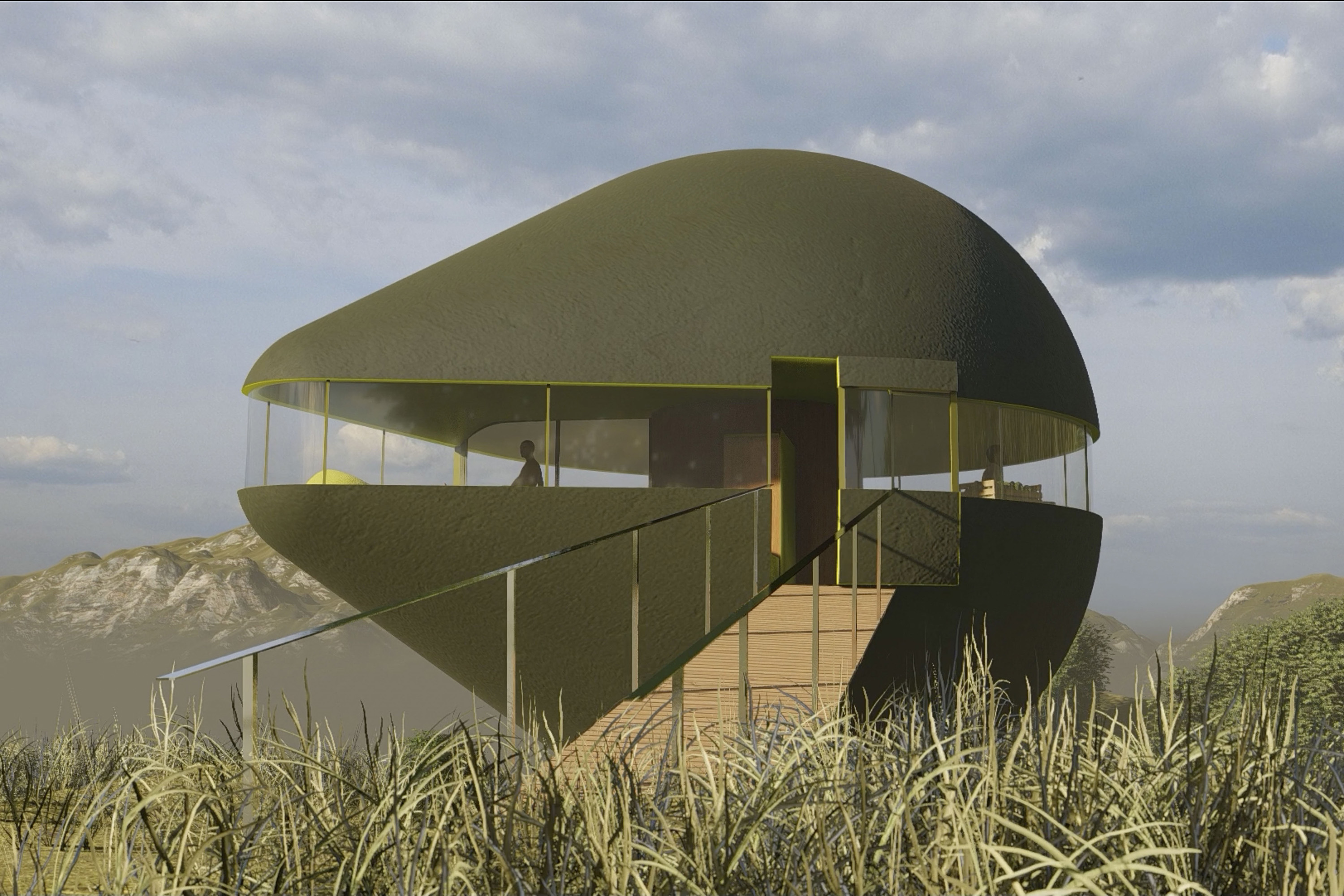 Liveable Giant Mushroom Spaceship in the Middle of the Jungle