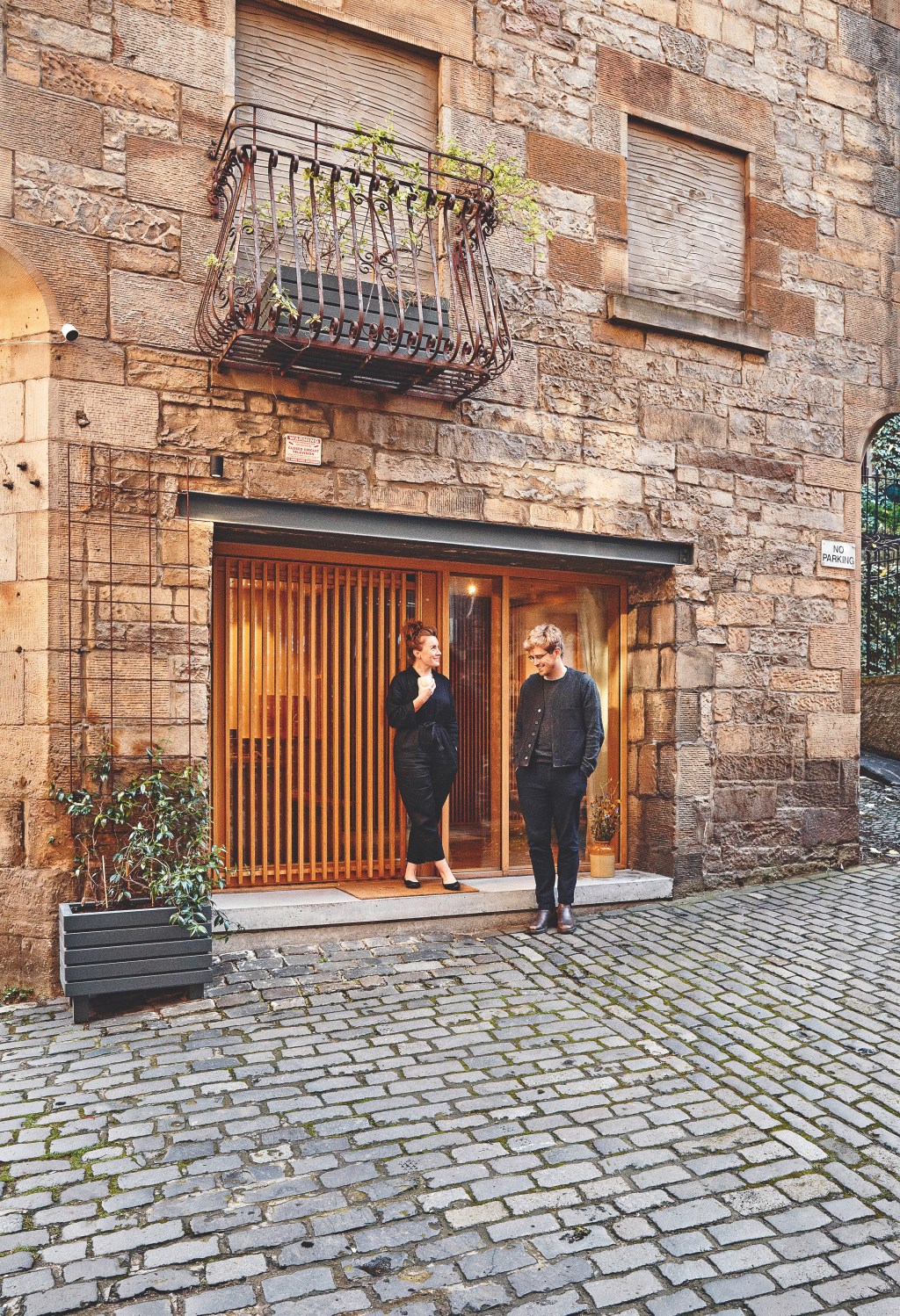 Wer nicht genau hinschaut, läuft vorbei an dem unscheinbaren Gitter zwischen dem quietsch grünen Café und dem dunkelblauen Zeitungsladen. Rundum den Grassmarket herrscht Trubel: Laute Pubs, schrille Läden und volle Restaurants reihen sich aneinander. Aber hinter dem Durchgang wartet auf Eingeweihte eine andere Welt voll Ruhe, Schönheit und Handwerkskunst. „Porteous’ Studio“ heißt das Herzensprojekt der jungen Architekten Eilidh Izat und Jack Arundell, das die beiden in dem gepflasterten Hinterhof geschaffen haben und auf Airbnb an Gäste vermieten.