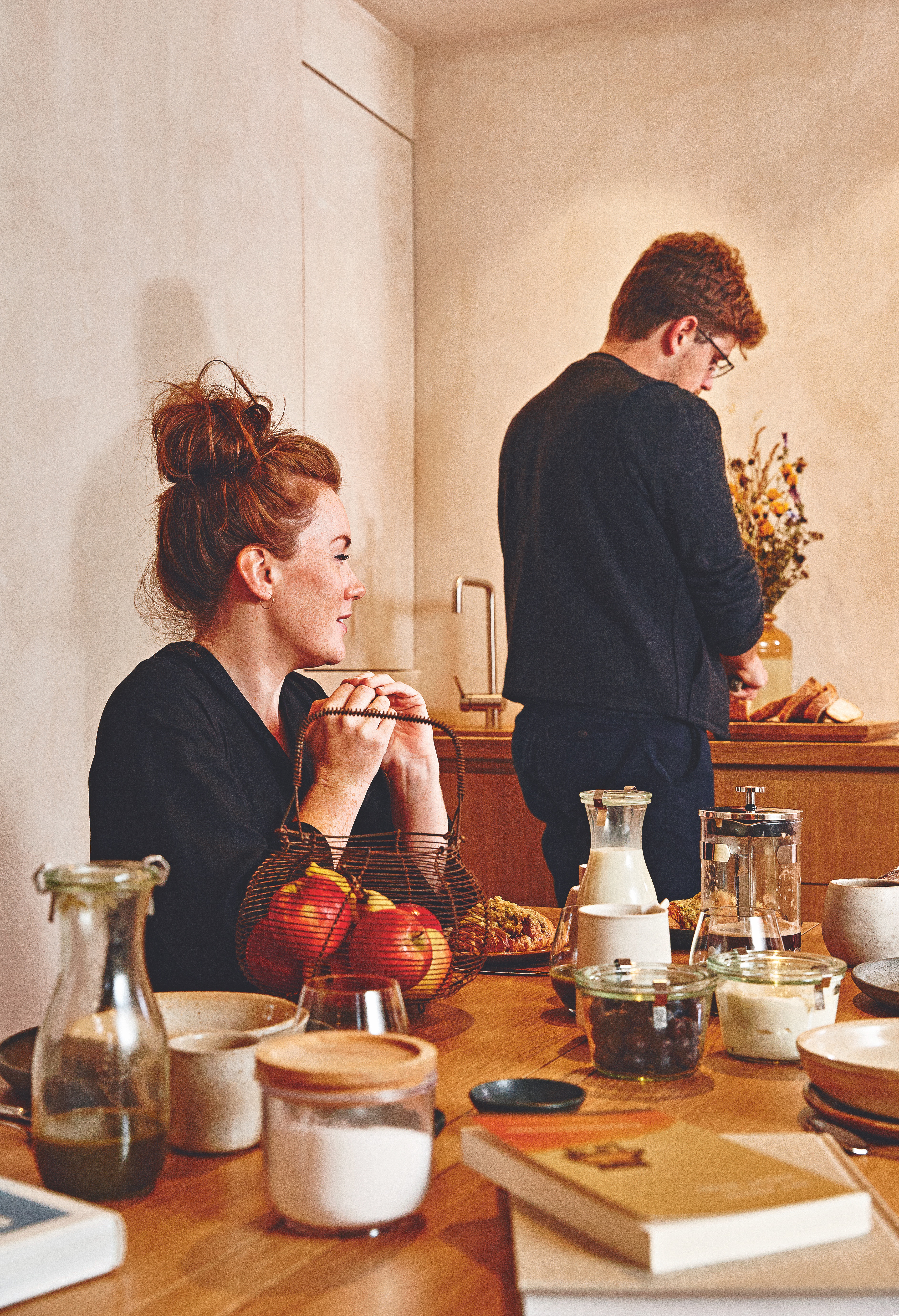Regionale Verbundenheit war Eilidh und Jack nicht nur in der Haptik des Studios wichtig: Um einen Ort der Begegnung zu schaffen, sind im Apartment jeden Monat feste Tage für einen „Supper Club“ geblockt: Jack, der mehrere Jahre als Koch gearbeitet hat, serviert an diesen Abenden kleinen Gäste runden selbstgekochtes Essen, die Teilnehmer melden sich über Instagram an. „Wir achten darauf, dass sich niemand untereinander kennt – so entstehen jedes Mal neue Freundschaften“. Eilidh und Jack selbst sind selbst Zugezogene: Sie kam aus Aberdeen zum Architekturstudium, Jacks Weg führte aus Nordengland nach Schottland. Dort fand der Wasserbauingenieur gemeinsam mit Eilidh seine Liebe zur Architektur.