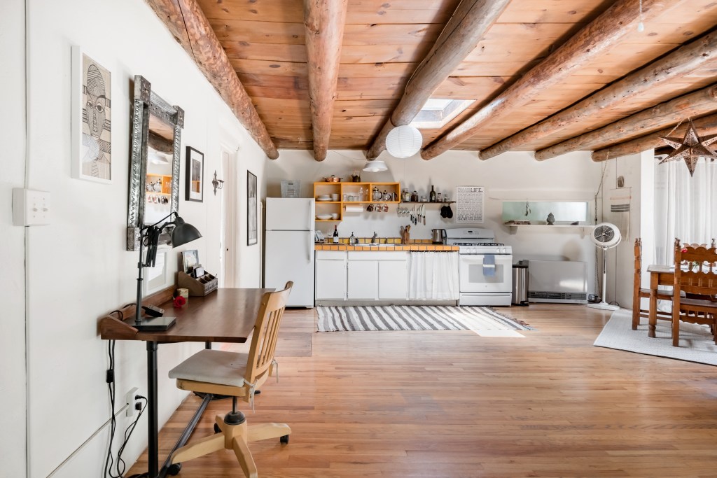 Immer mehr Menschen arbeiten von zu Hause. Ist kein Arbeitszimmer vorhanden und man möchte Wohn- und Schlafzimmer als Orte der Entspannung bewahren, ist die Küche mit der richtigen Planung ein idealer Ort fürs Home Office. Dort gibt es immer frischen Kaffee und gesunde Snacks anstatt Kantinenessen und die Arbeitszeit lässt sich flexibler einteilen als im Büro. Dieses tolle Kitchen Office findet sich in einer Lehmhütte in Taos, New Mexico in den USA – das zudem noch mitten in schönster Natur gelegen ist.