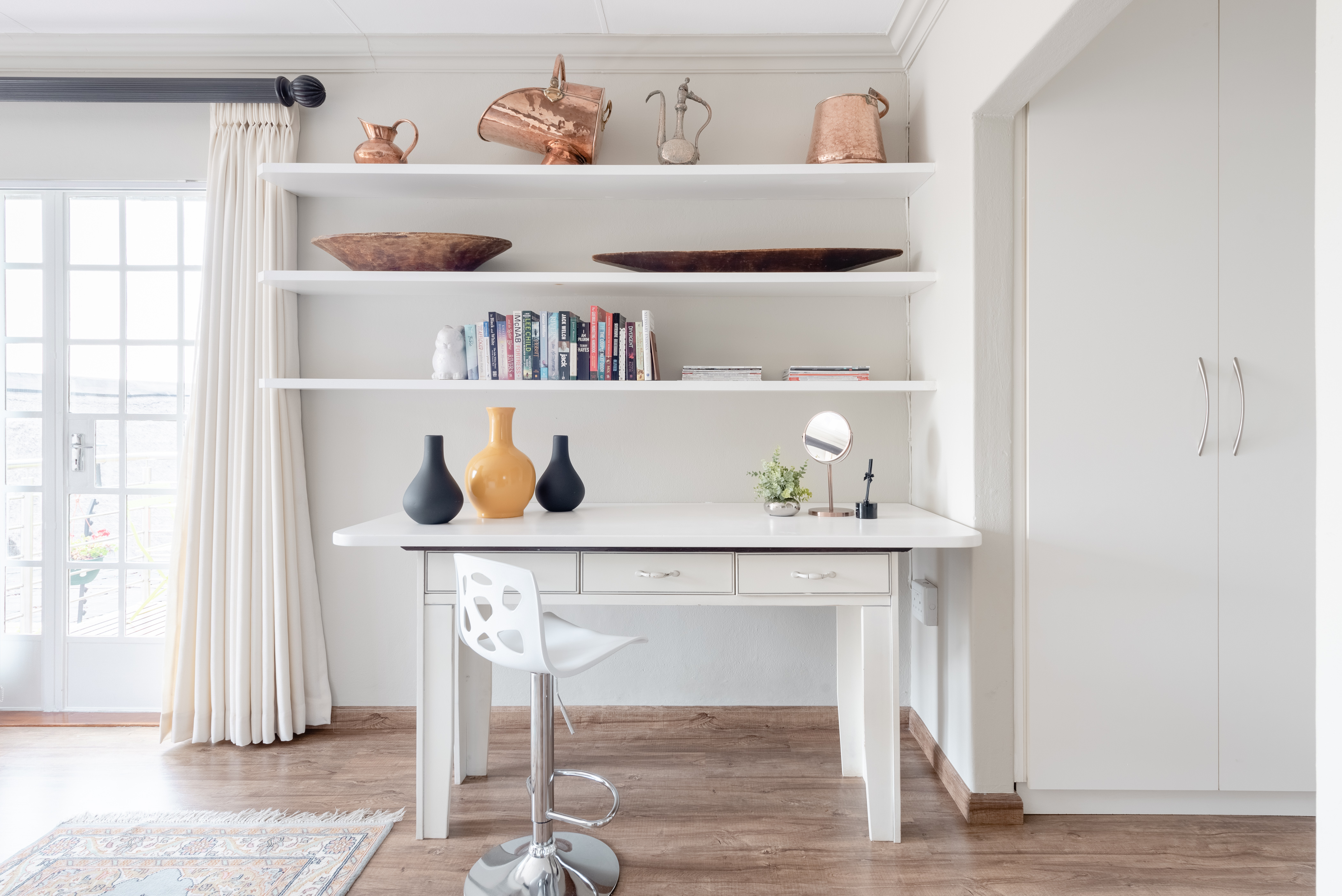 Die elegante Wohnung in Johannesburg macht es vor – ein Home Office im klaren und hellen Design strahlt ganz besonders. Ein Blick aus dem Fenster in den Himmel und die Weite in alle Richtungen trägt dazu bei, dass Gedanken fließen, Ideen entstehen und Strategien wachsen.