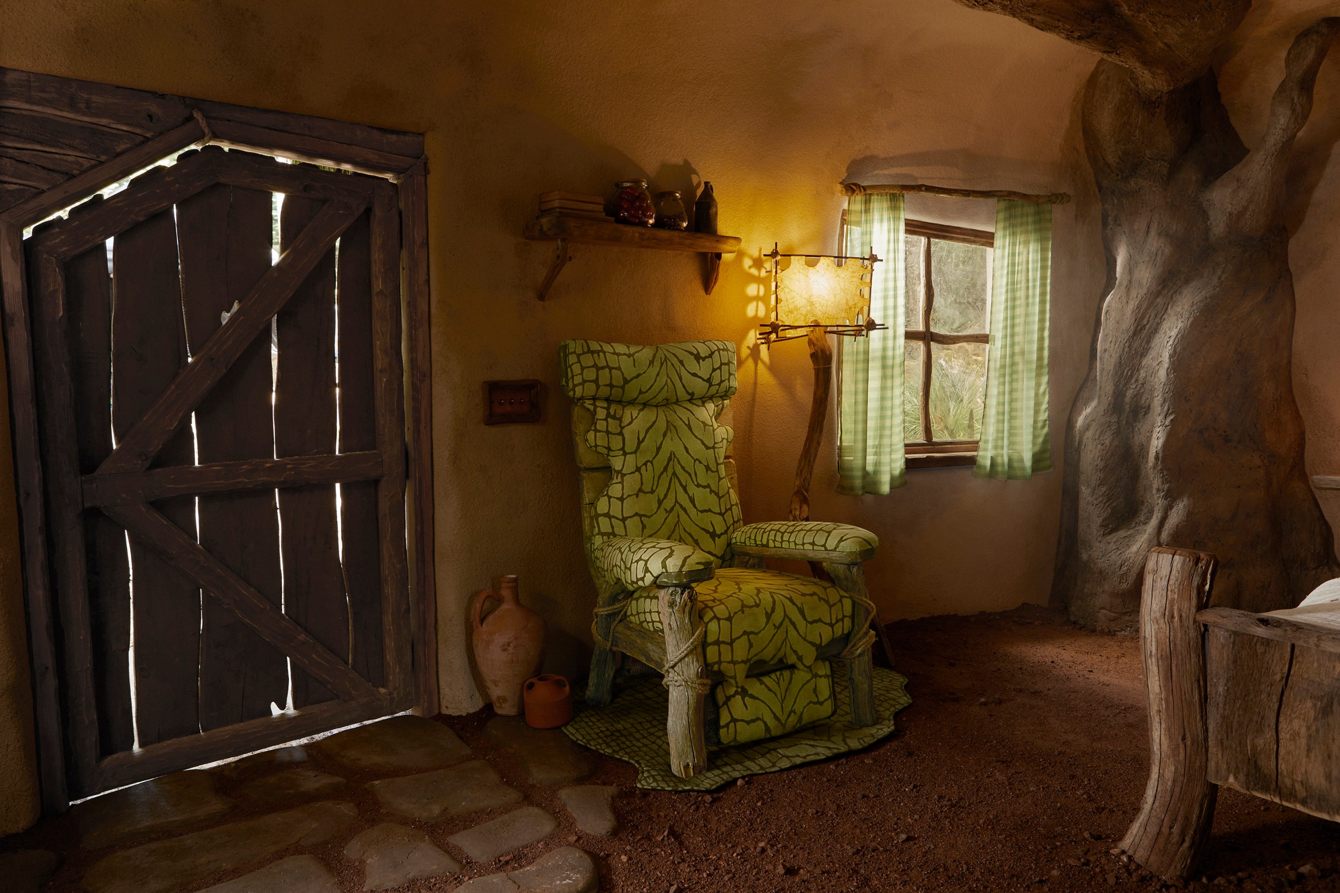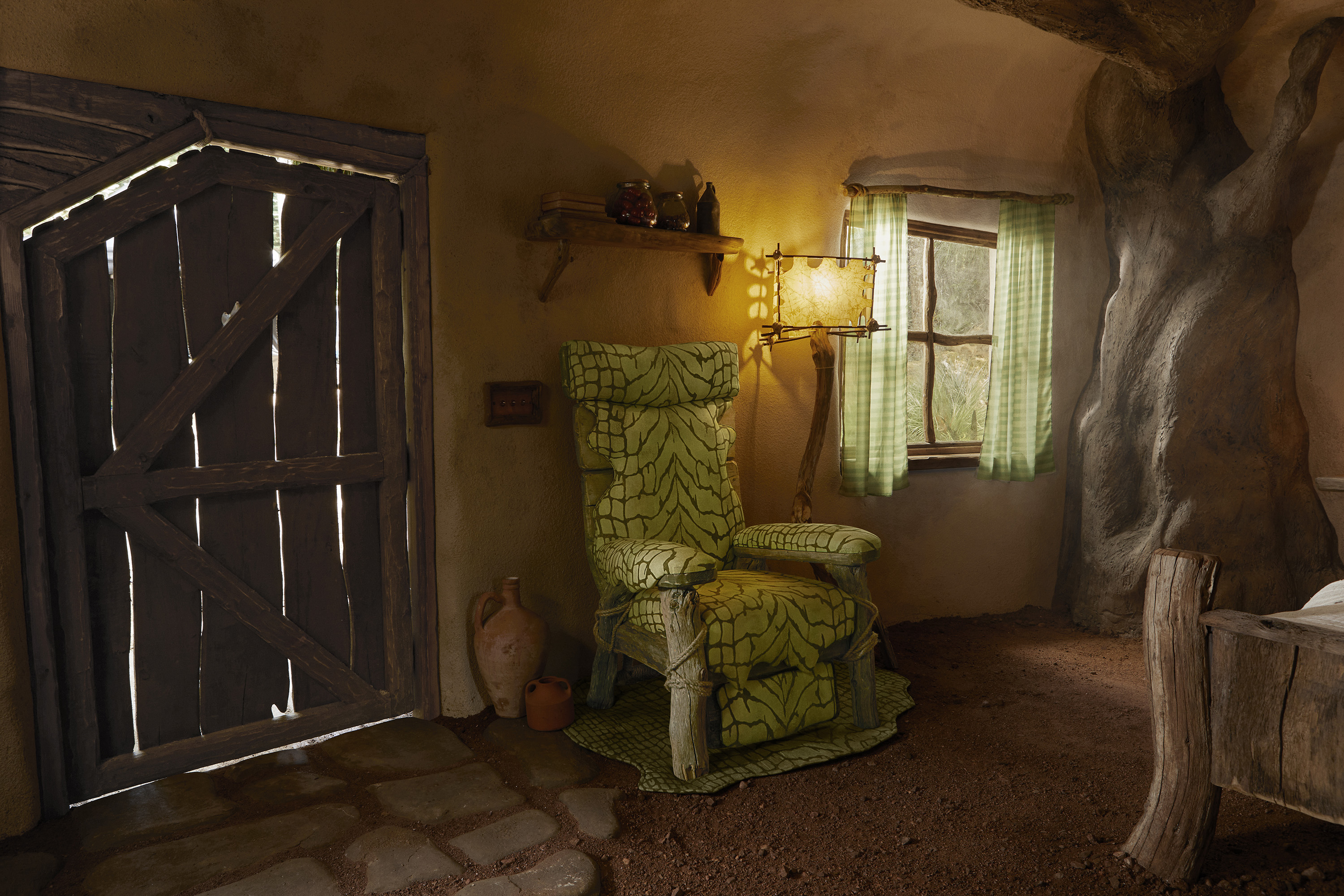 - Shreks Sumpf ist voll mit Schlamm, Moos und trübem Wasser und liegt inmitten der grünen Hügel Schottlands. Hier können Gäste bis spät in die Nacht aufbleiben, sich Geschichten erzählen und wie ein Oger essen – denn zum Frühstück macht Esel Waffeln.