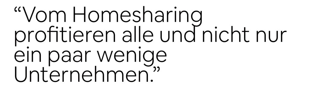 “Warum versucht die Stadt München etwas zu kontrollieren, was einen positiven Einfluss auf die Stadt hat? Homesharing und andere Sharing-Economy Konzepte geben dem einzelnen Bürger die Möglichkeit seine Ressourcen zu nutzen, um etwas Geld zu verdienen und um Menschen kennenzulernen. Für mich ist das Gesetz die Lösung für ein nicht vorhandenes Problem. Vom Homesharing profitieren alle und nicht nur ein paar wenige Unternehmen.”