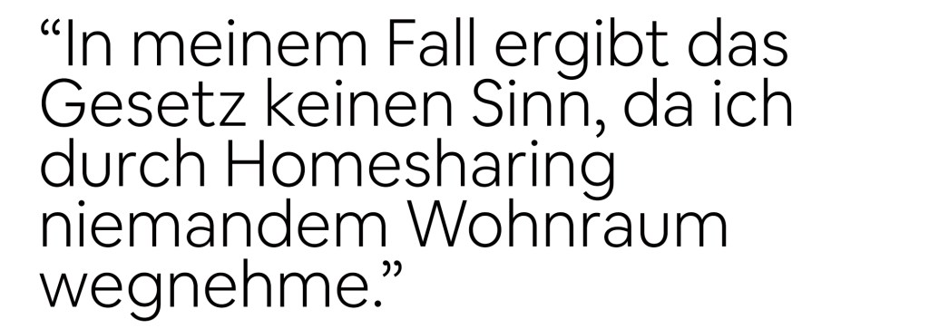 “Ich bin sehr enttäuscht über die neuen Regelungen, die in Hamburg festgelegt wurden. In meinem Fall ergibt das Gesetz keinen Sinn, da ich durch Homesharing niemandem Wohnraum wegnehme. Ich wohne über die Hälfte der Woche selbst hier und gegebenenfalls möchte ich irgendwann wieder ganz nach Hamburg ziehen. Warum sollte mein Eigentum leerstehen, wenn ich beruflich oder privat zeitweise unterwegs bin? Zudem verdient die Stadt auch an meinen Steuern, die ich auf die Einnahmen durch Homesharing bezahle. Es ist unverständlich, dass so ein großer und bürokratischer Aufwand betrieben wird für eine Sache, die uns allen zugutekommt.”
