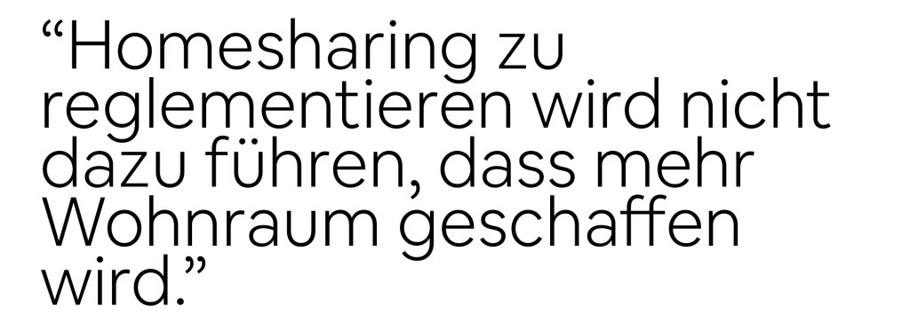 “Airbnb und Homesharing im Allgemeinen zu reglementieren wird nicht dazu führen, dass mehr Wohnraum geschaffen wird. Meiner Meinung nach vermieten die meisten Menschen über Airbnb nur kurzfristig und leben selbst die meiste Zeit in ihrem Zuhause.”