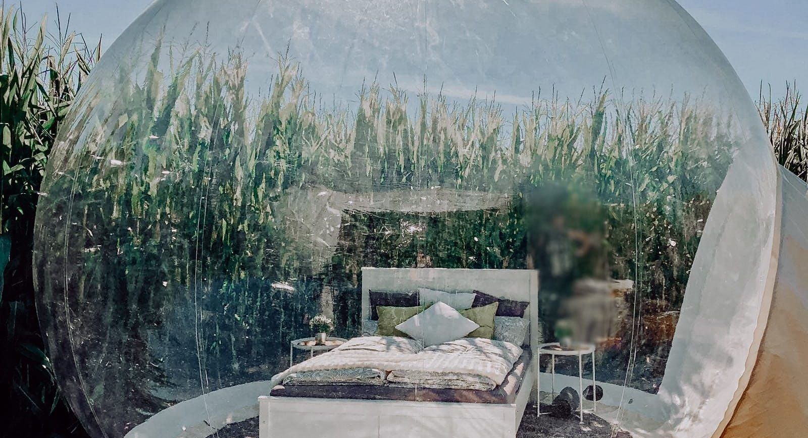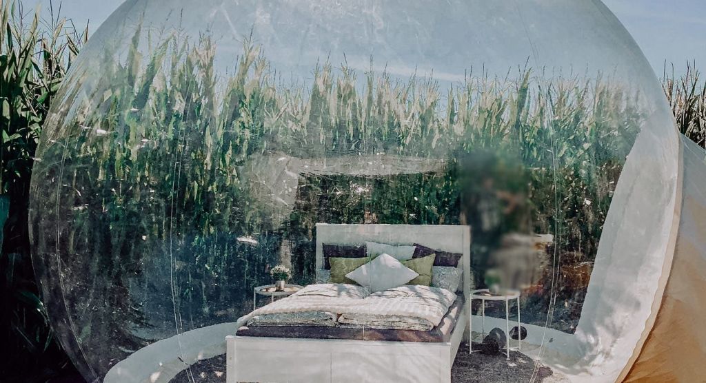 Außergewöhnlich übernachten in der “Luftblase” im Maisfeld