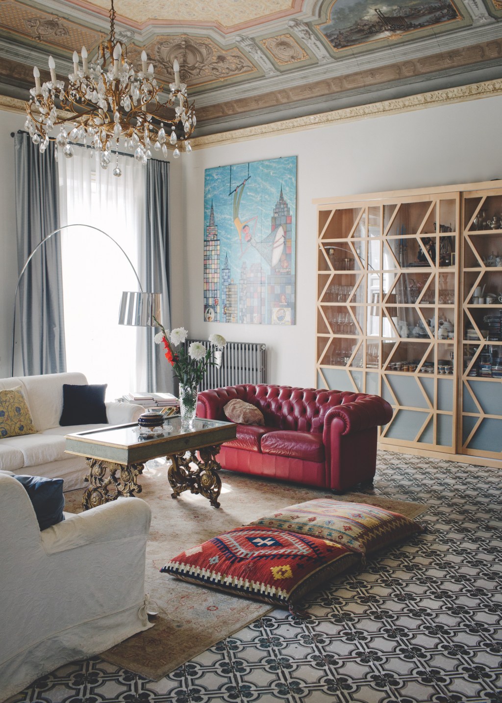 Die Anti-Mafia-Politik der letzten Jahrzehnte trägt endlich Früchte. Das merkt Antonio auch in seinem Job. Er vermietet Segelboote und fährt Törns mit Touristen. Seit ein paar Jahren floriert das Geschäft. Die Sommermonate verbringt die Familie auf ihrem Segelboot in Griechenland, dann wird auch die eigene Wohnung vermietet, die auf den nächsten Seiten zu sehen ist.„Für Besucher ist das natürlich toll: Man lebt mitten in der Geschichte von Palermo, und trotzdem ist nichts altbacken.“ Überhaupt findet Antonio, dass man weder in der Wohnung noch im Leben Angst haben darf, Altes mit Neuem zu kombinieren. Unter dem Anstrich legte er beim Umbau über 100 Jahre alte Wand und Deckenfresken frei, die in neuen Farben nachgezeichnet wurden.