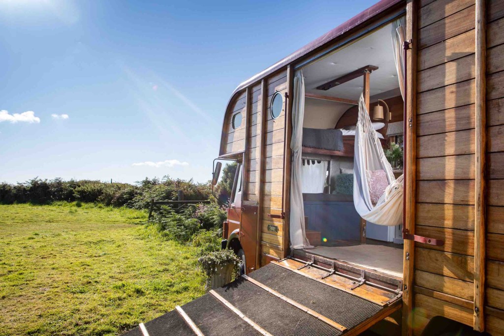 Dass man in einem ehemaligen Pferdetransporter wunderbar Urlaub machen kann, beweist diese Unterkunft, bei der Kreativität und Nachhaltigkeit groß geschrieben werden. Die schick designte “Horse Box” befindet sich im Dorf Nancledra in der Nähe der Städte St. Ives und Penzance im Westen Cornwalls.