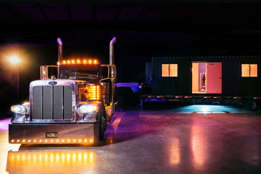 El espacio diseñado por West Coast Customs con llamas cromadas, parrilla, luces personalizadas y todos los interiores de cuero, está inspirada en el papel protagonista que han jugado los tráilers en el éxito musical de Bad Bunny, que incluye uno en la portada de su último álbum y otro que ocupa un lugar central durante la secuencia de apertura en sus shows de la gira.