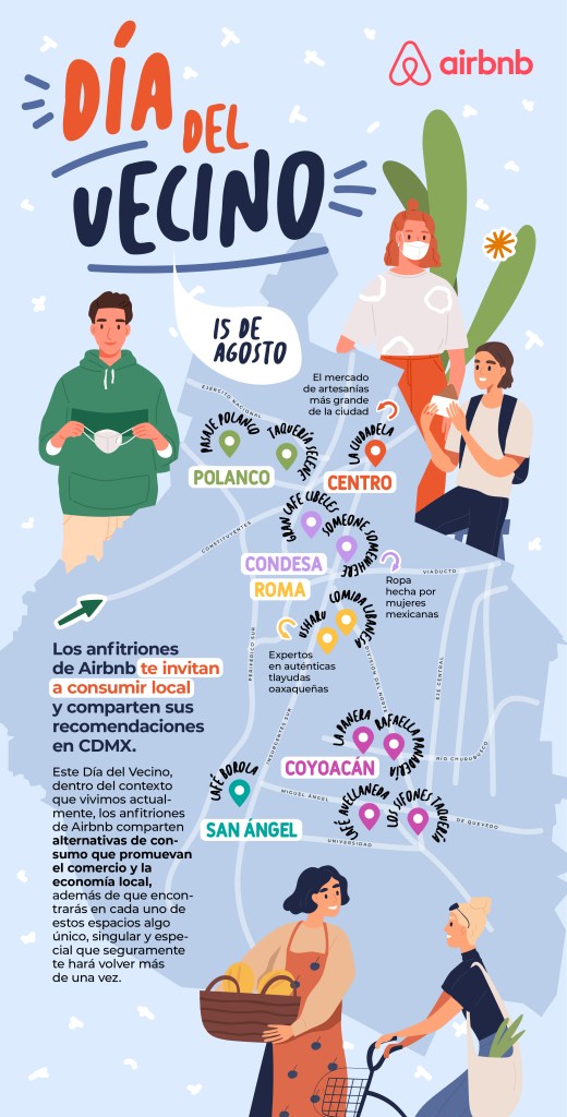 El sábado 15 de agosto se celebra en México el “Día del Vecino”. ¿No te suena? ¿Es algo nuevo para ti? Aquí te contamos de qué trata esta fecha tan peculiar y, además, te compartimos algunas recomendaciones que distintos anfitriones de Airbnb han hecho para que conozcas comercios cuyos productos y servicios son lo más destacado de distintas zonas de la Ciudad de México.