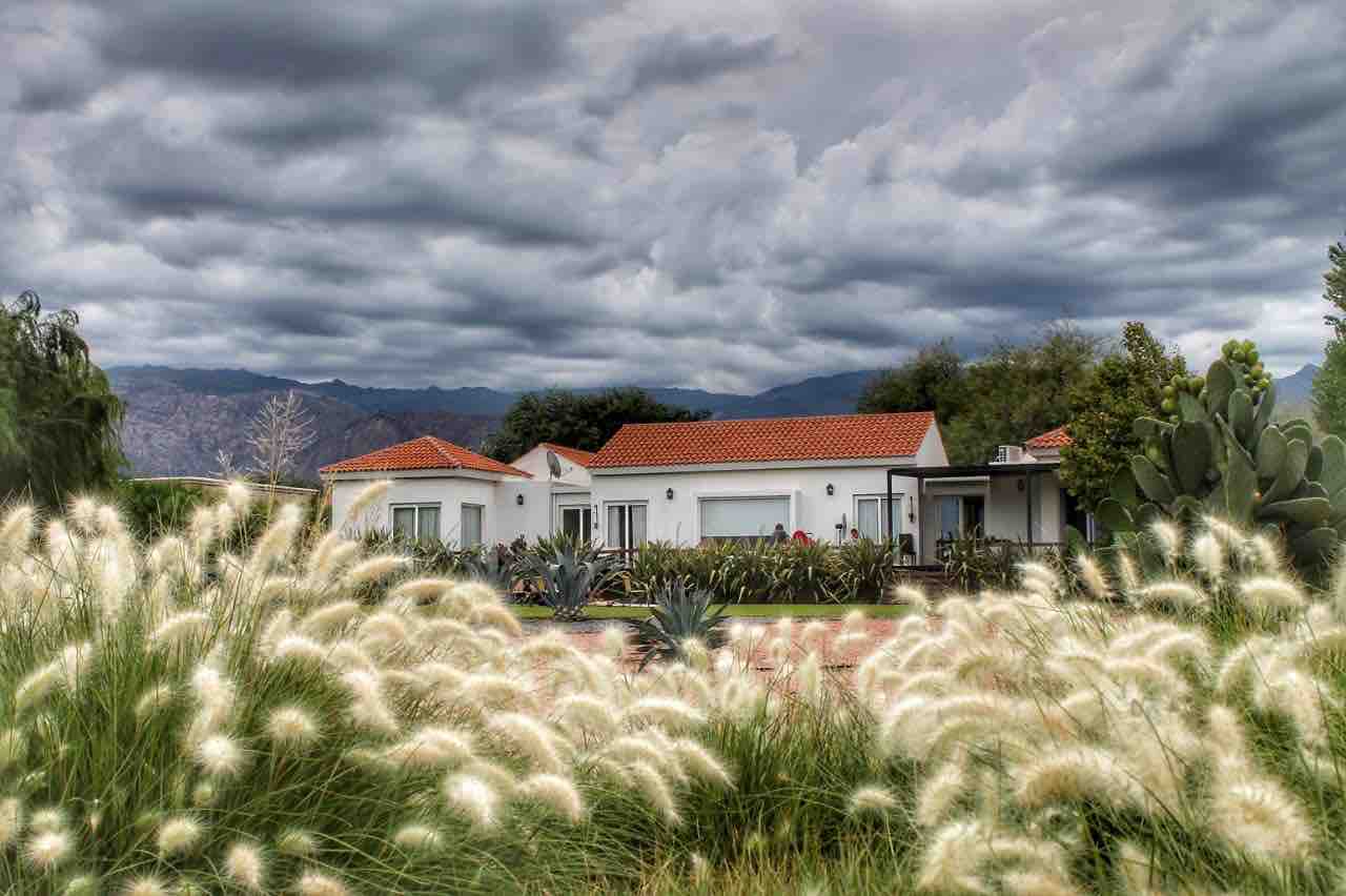 Entrar a este club de campo es como entrar en un oasis rodeado de los cerros colorados tan característicos de la región. La casa se ubica frente a lo viñedos y cuenta con todos los electrodomésticos y servicios necesarios para no pensar en otra cosa que no sea disfrutar. Un amplio deck de madera invita al viajero a relajarse junto a algunos de los vinos característicos de la región.