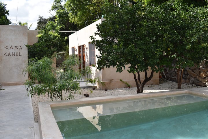 Este hermoso alojamiento te hará sentir como en casa, es ideal para descansar y disfrutar la tranquilidad que brinda su patio. Se encuentra a solo 15 minutos de la Plaza principal de la Ciudad y con varias rutas y circuitos de transporte disponibles para que puedas conocer Yucatán como todo un residente.