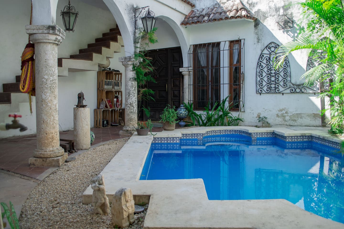 Si se trata de bonito, barato y único, este Airbnb es perfecto. Esta habitación definitivamente tiene estilo, su acabado chukum (mezcla de la resina del árbol del mismo nombre con cemento blanco y piedra caliza), su espacio libre con diseño colonial y acabados típicos de la zona maya, hacen de este alojamiento moderno y relajante. Además de estar a 7 cuadras Paseo de Montejo, la avenida principal de Mérida, ofrece amenidades como alberca, cocina y Wifi.