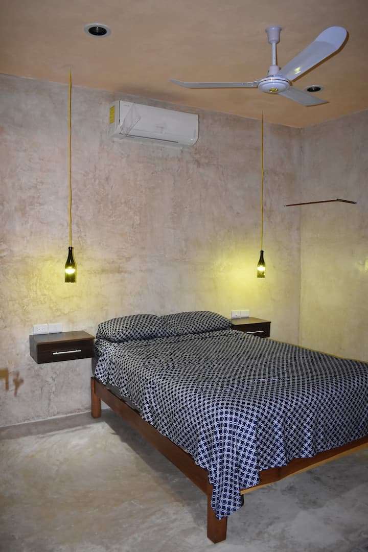 Ubicado en el Centro de Yucatán, se encuentra esta increíble y acogedora habitación. Este Airbnb es perfecto para descansar de un largo día en el Centro de Convenciones y Exposiciones Siglo XXI, pues la habitación cuenta con un baño completo, una pequeña cocina, piscina y decoraciones artesanales que le dan vida a cada rincón.