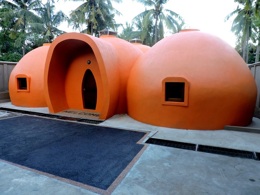 Close to the beach, this uniquely shaped and brightly painted home in Nusa Tenggara Barat, Indonesia is great for couples, solo adventurers and families with kids.