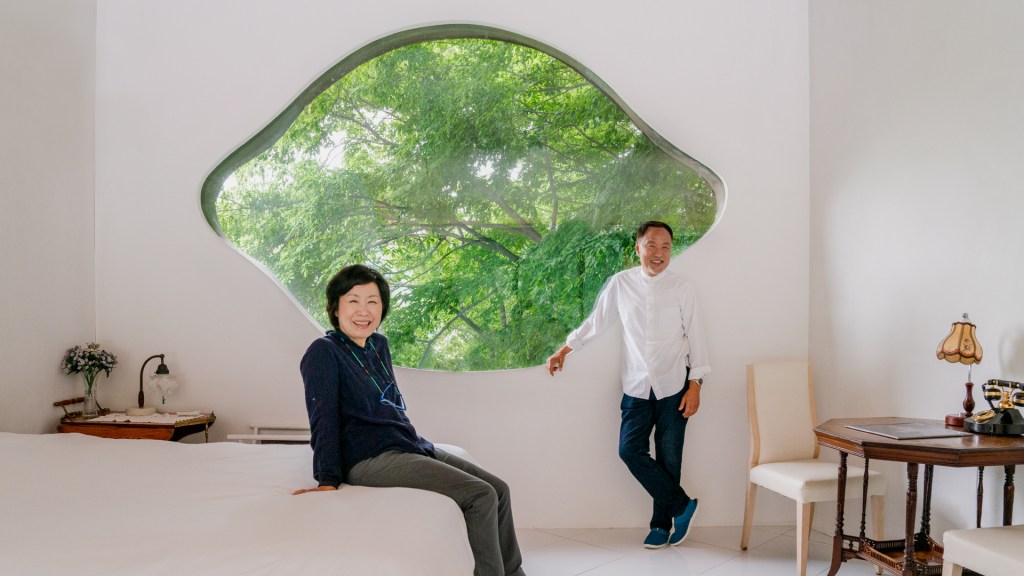 When visual artist Younghee and her husband Dongwook moved back to Korea after raising their children in the U.S. and Japan, they decided to build a one-of-a-kind modern home that expressed their artistic vision—The Lemon House, which boasts an art gallery, expansive views of the Gwanju-si countryside, and a distinctive lemon-shaped window in the top floor suite. “Lemons are a motif I often use in my art,” Younghee says. “It’s light-hearted, and my grandchildren have enjoyed playing here.”