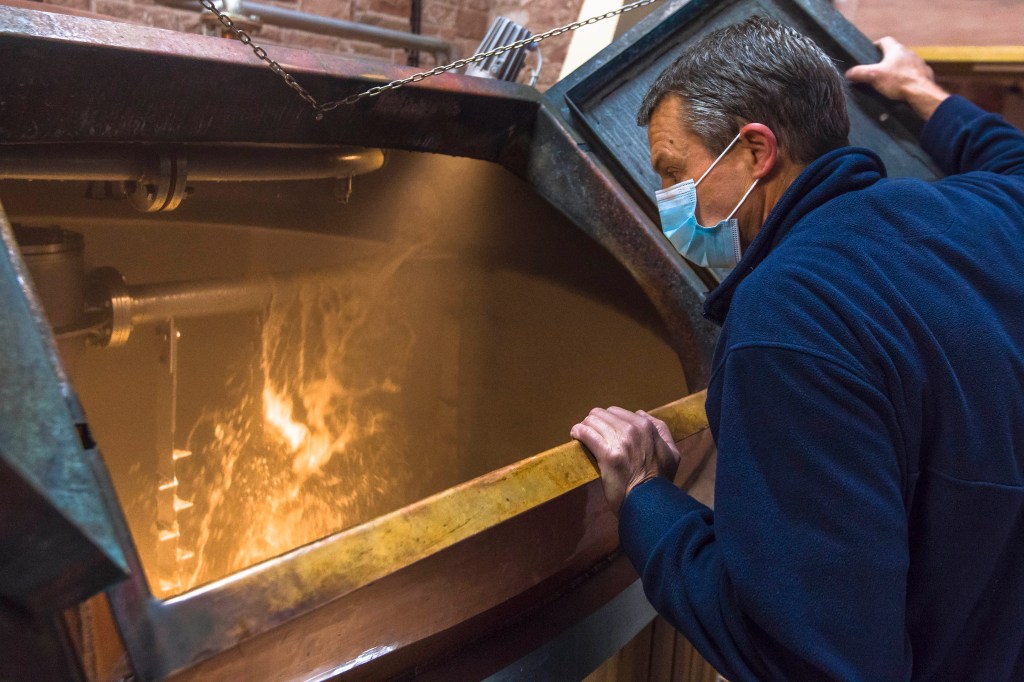 Senior Distillery Supervisor and Stillman Darren Irving inspecting and monitoring the temperature of the stills -