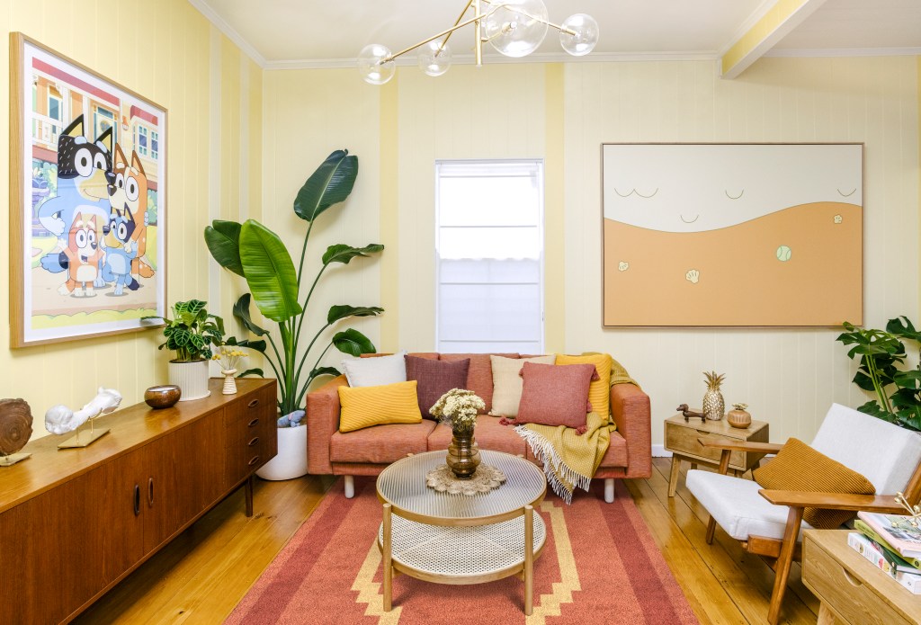 Inside, the interior has been re-imagined with a breezy Mid-century aesthetic coupled with playful pops of colour. The girls’ playroom with its signature rainbow canopy, kiwi rug and numerous toys – including Bluey’s beloved Chattermax toy and Magic Xylophone – is the ultimate setting for creative play and make believe.