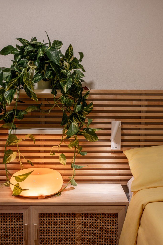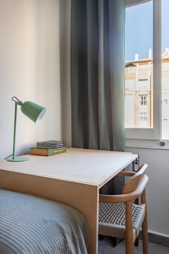 Funcionalidad y comodidad, estos eran los dos imprescindibles de Mercè al llevar a cabo el rediseño de su habitación junto a Tas Careaga. Asimismo, la anfitriona quería un espacio que fuera algo más acogedor para sus huéspedes, para que se sintieran como en casa. El espacio renovado, ahora cuenta con un conjunto de escritorio y silla mid-century que combinan a la perfección la comodidad y practicidad que buscaba, mientras que las plantas, los tonos verdes de la alfombra y las fotografías enmarcadas en madera clara, aportan a la habitación la calidez que se buscaba.