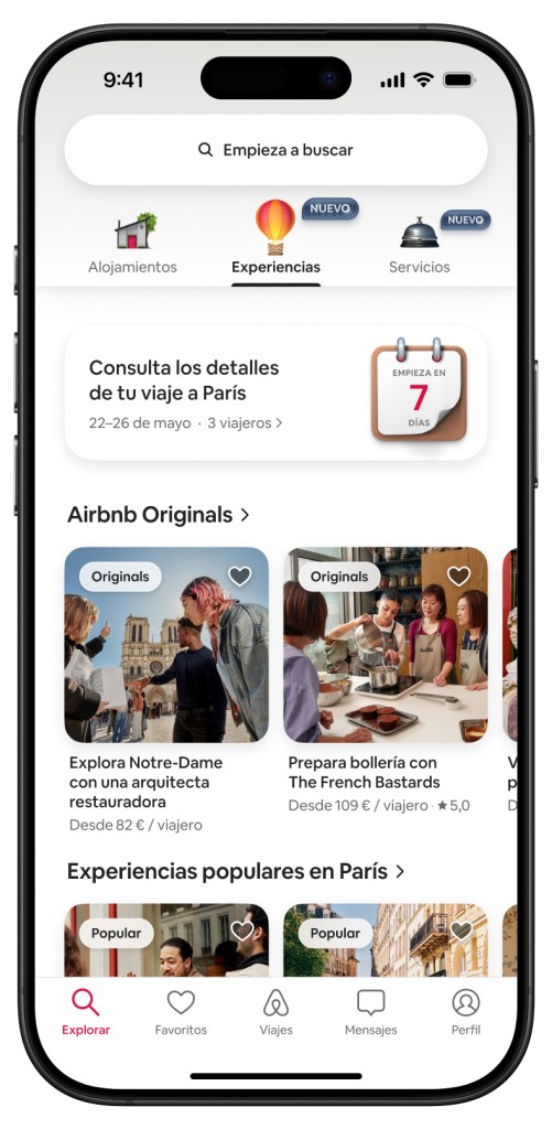 Desde 2010, el diseño de la aplicación estaba pensado para hacer una sola cosa: reservar un alojamiento. Con el lanzamiento de los servicios y el nuevo concepto de experiencias, se ha renovado totalmente la aplicación. A partir de hoy, los viajeros podrán reservar alojamientos, servicios y experiencias desde un solo sitio.