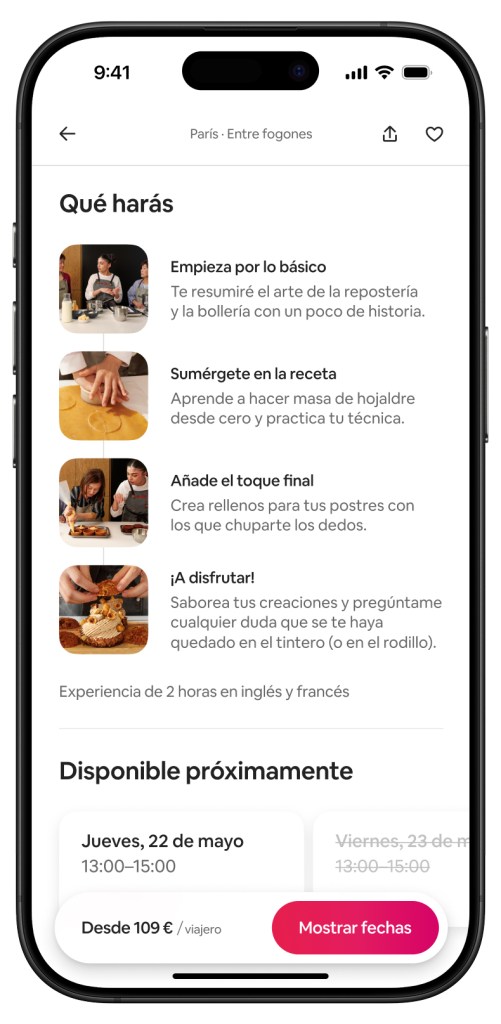 La app de Airbnb será una compañera de viaje. Cuando los usuarios reserven un alojamiento, la aplicación les sugerirá servicios y experiencias en función de dónde se vayan a quedar y de quién les acompañe4. Cuando lleguen al destino, la aplicación les dará la bienvenida con un itinerario detallado que incluirá información de la llegada y un resumen por día de todo lo que han reservado en Airbnb. Y, durante toda la estancia, recibirán recomendaciones de experiencias que se ofrezcan en la zona.