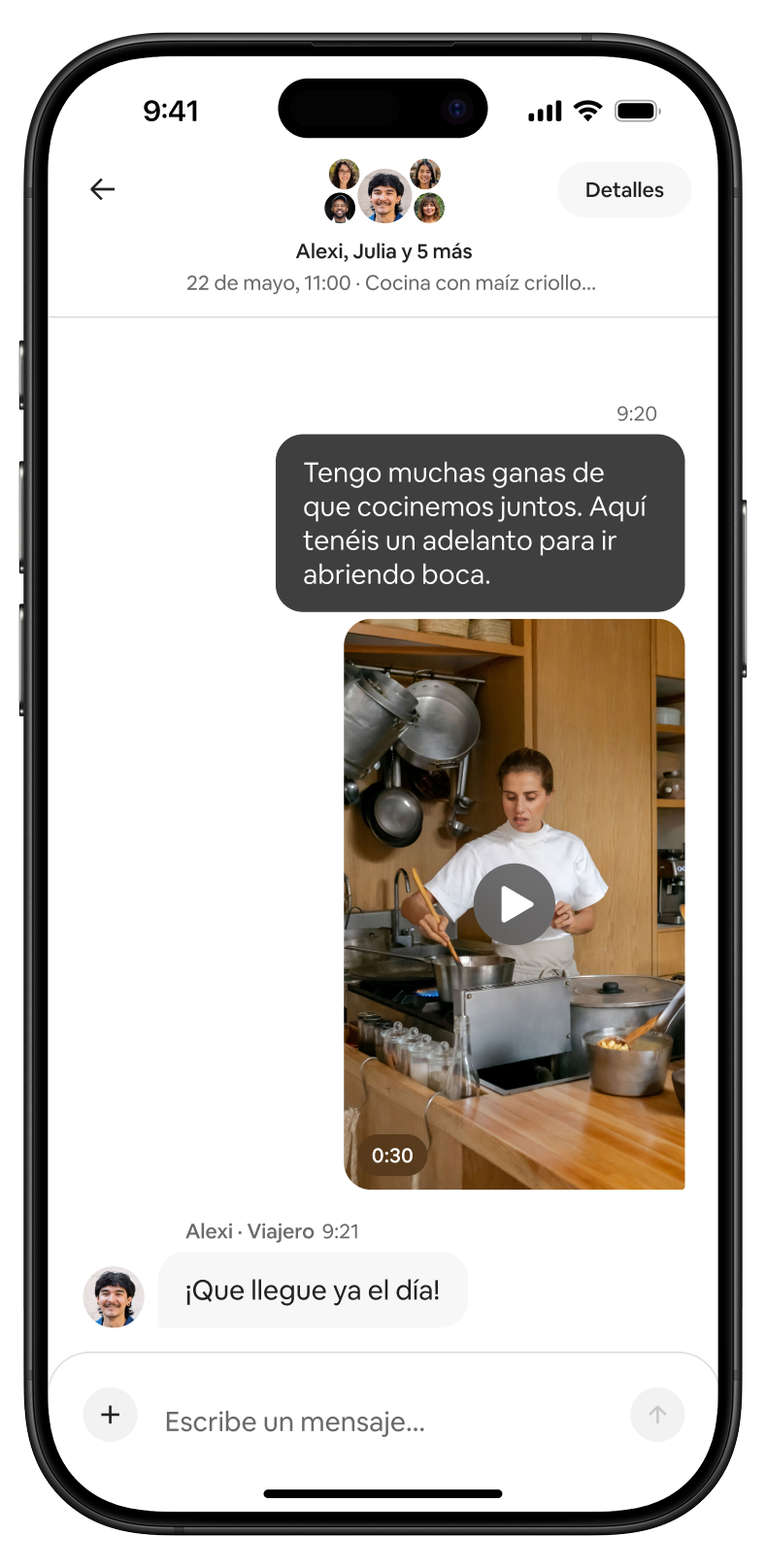 Las Experiencias en Airbnb también están pensadas para que las personas se relacionen entre sí. Más adelante este año, los viajeros podrán ver quién va a participar en una antes de reservar, enviar mensajes al grupo o por privado a quienes se han apuntado durante la actividad y seguir en contacto después de que termine. Todo ello con unos ajustes de privacidad muy sencillos de aplicar y transparentes. Además, no hace falta estar de viaje para unirse a una. ¡Las experiencias en Airbnb son tan increíbles que la propia gente local seguro querrá reservarlas en su propia ciudad!