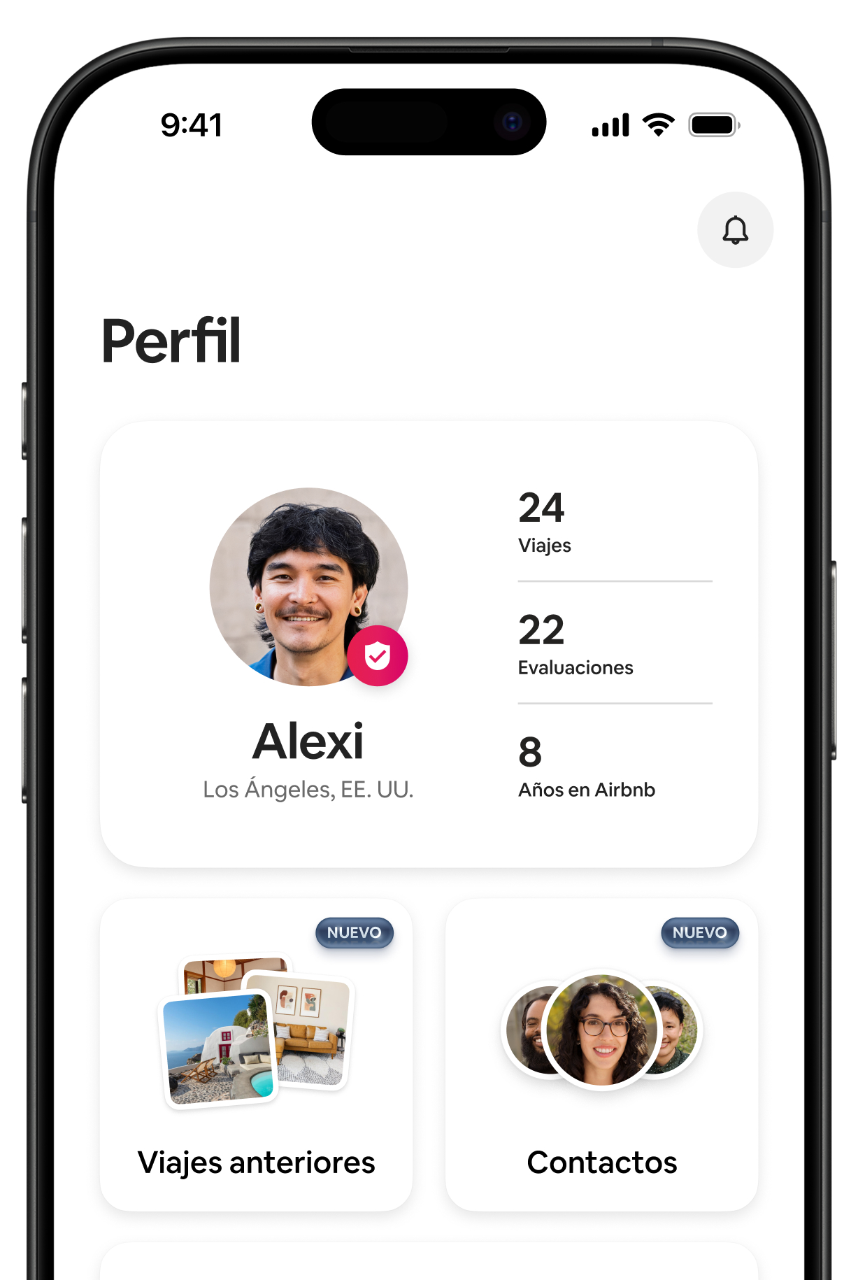 Un nuevo diseño del perfil de Airbnb que te permite mostrar adónde has viajado con Airbnb y a quién has conocido al hacerlo. Además, ahora destacamos los de los más de 200 millones de viajeros y anfitriones de todo el mundo que han completado nuestro proceso de verificación de identidad.