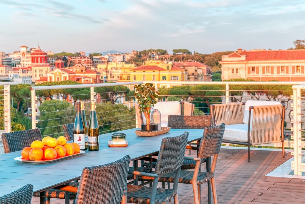 Imprégnez-vous de la grandeur de Rome dans ce logement de luxe offrant une vue panoramique sur le Tibre. Profitez de repas gastronomiques préparés par un chef privé, avec en toile de fond la magnifique skyline romaine depuis une grande terrasse sur le toit. Situé à quelques pas des sites tels que le Vatican et la Place d’Espagne, ce penthouse est un refuge paisible au cœur de la ville.