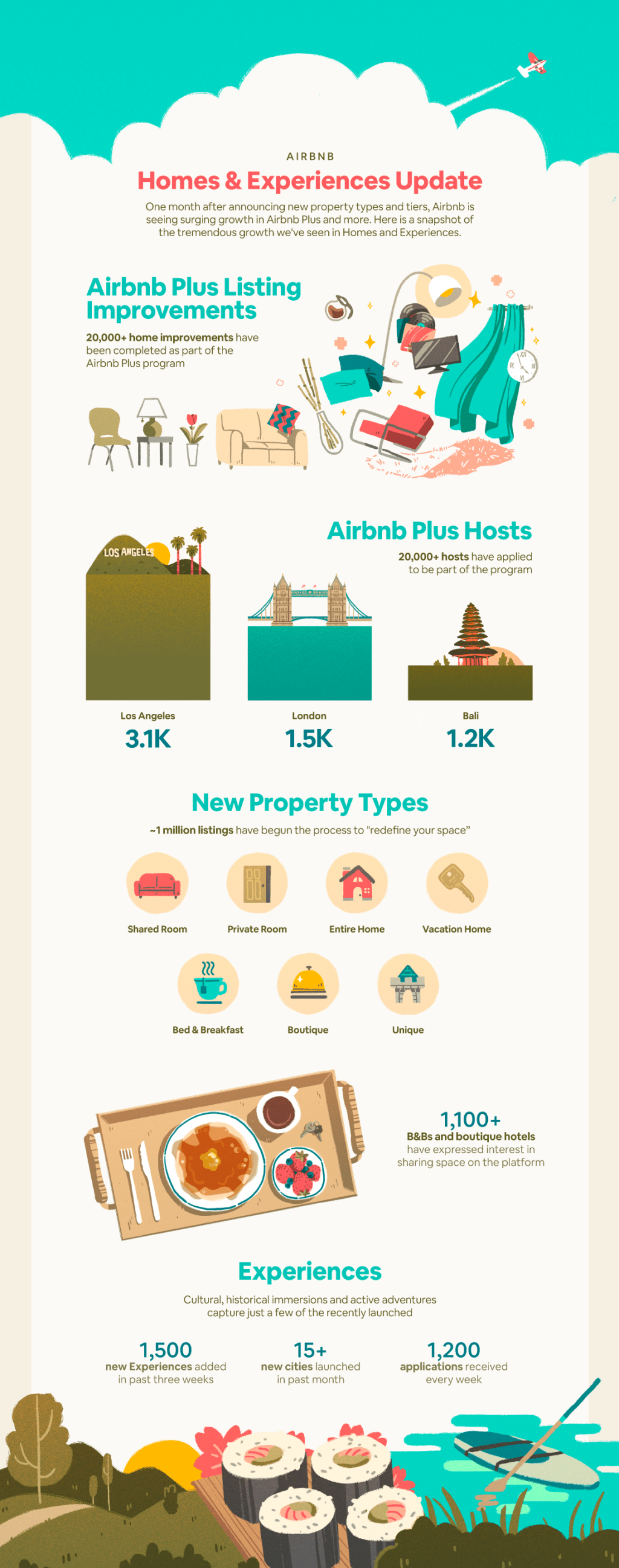 - 20.000 hôtes ont formulé une demande pour que leurs logements soient retenus pour le programme Airbnb Plus, avec un fort intérêt pour des marchés comme Los Angeles (3.100), Londres (1.500) et Bali (1.200).