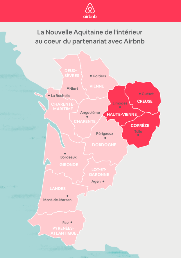 Ce rapprochement vise à valoriser le potentiel touristique des destinations intérieures de la Nouvelle Aquitaine. Le développement des voyages sur Airbnb peut permettre de compléter l’offre existante, et de générer de nouvelles sources de revenus pour les habitants, les commerces et les collectivités locales telles que la Haute Vienne, la Creuse et la Corrèze.