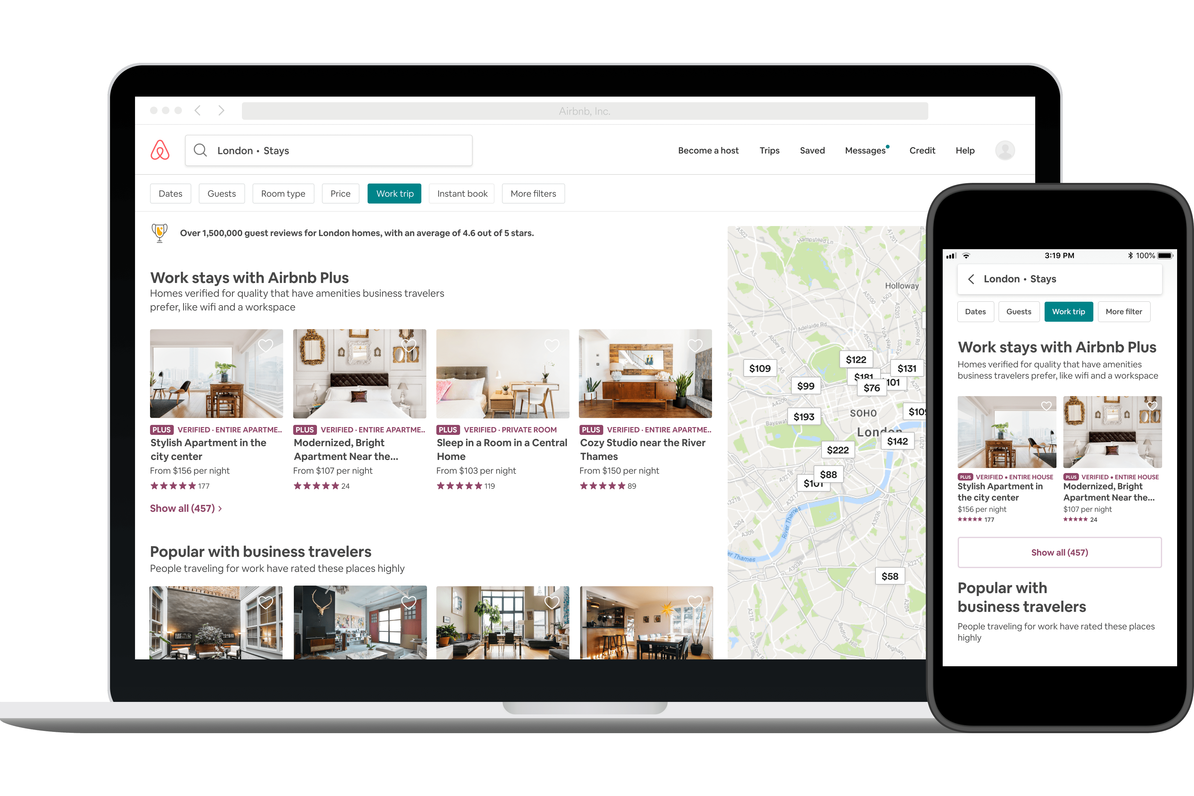 Lorsque les voyageurs nous font savoir qu’ils se déplacent pour le travail en utilisant ce filtre, leurs résultats de recherche reflèteront les logements les plus pertinents. Ainsi, ils verront et pourront réserver des hébergements adaptés et accueillants, y compris des maisons entières, des logements Airbnb Plus dont la qualité et le design sont vérifiés, et des chambres en boutique hotels. Cette nouvelle fonctionnalité de recherche inclut également les hébergements qui ont été bien notés par les autres voyageurs d’affaires et où les hôtes ont indiqué qu’il existe des détecteurs de fumée et de monoxyde de carbone.