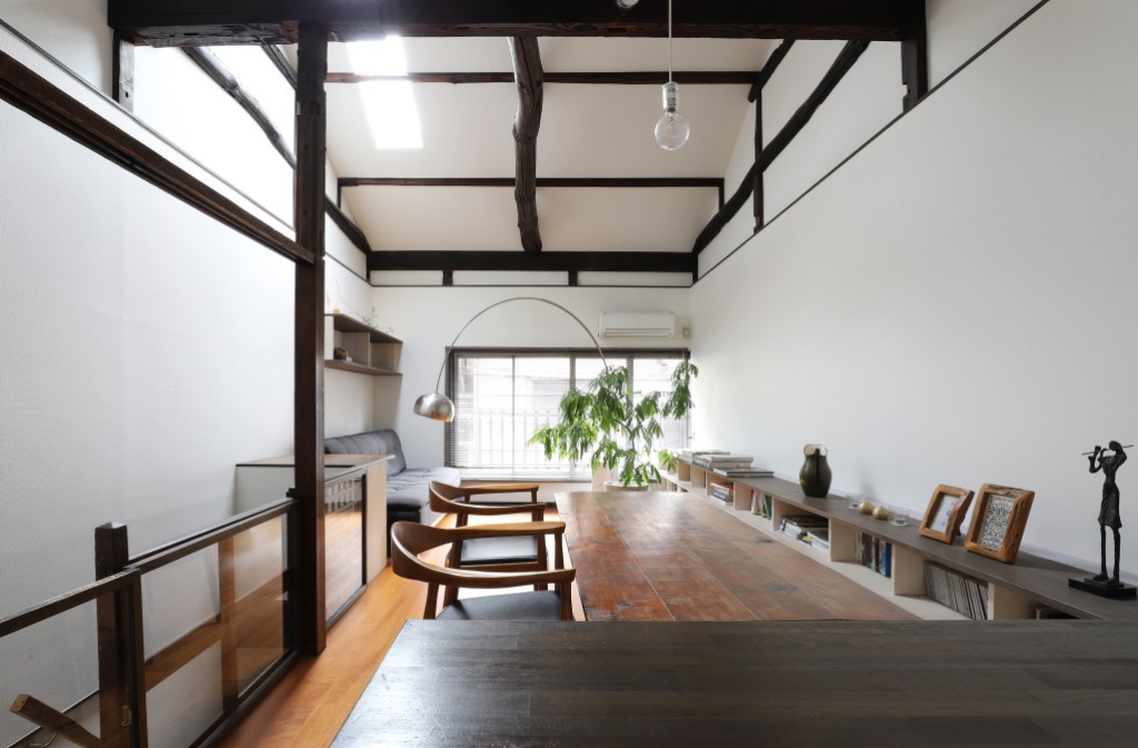 Cette maison construite par l’architecte Motoji Funatsu présente un mélange de styles uniques, dont un escalier en colimaçon avec des murs apparents et des meubles en bois classiques, en accord avec les tendances de cette saison qui mettent à l’honneur les contrastes.