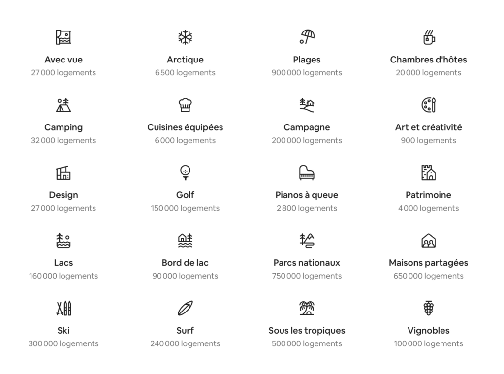 Les catégories Airbnb