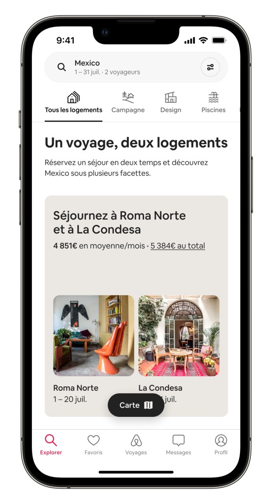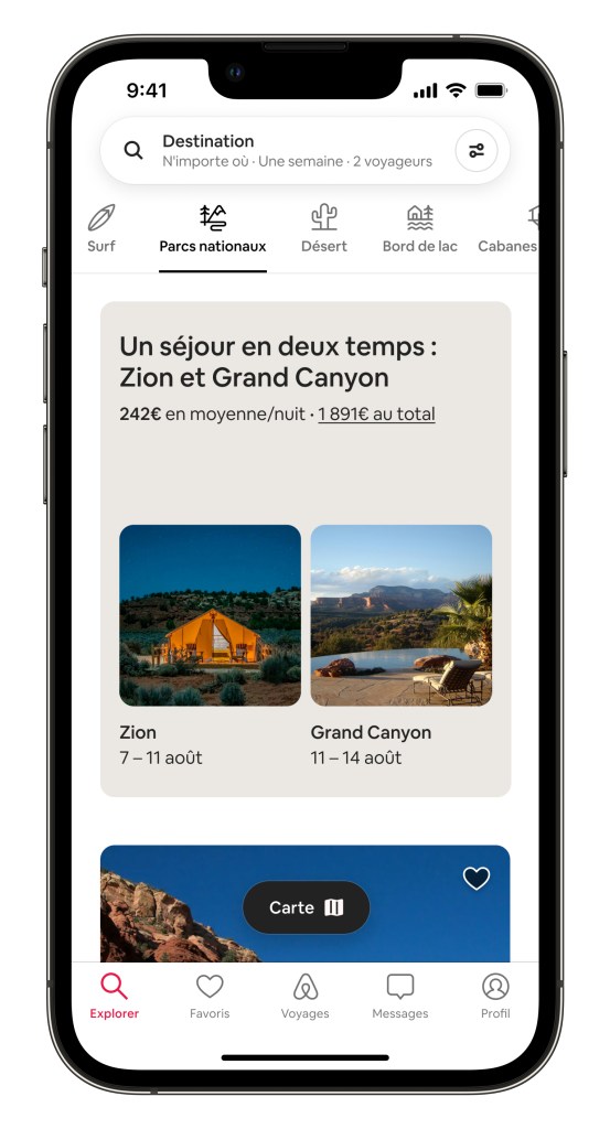 Avec une toute nouvelle manière de rechercher les voyages conçue autour des catégories Airbnb, une nouvelle fonction « séjours en deux temps » et l’extension aux voyageurs de la garantie AirCover, ce lancement représente la mise à jour la plus importante d’Airbnb depuis une décennie.