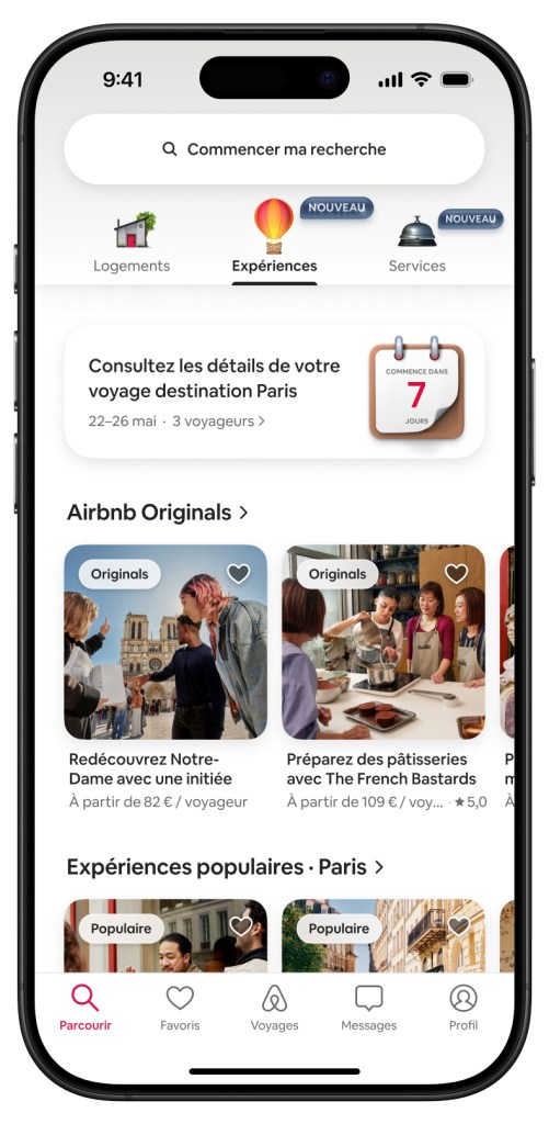 Nous lançons également les expériences Airbnb Originals, des activités extraordinaires organisées par des hôtes d’exception. Nous lançons des milliers d’expériences Airbnb Originals, conçues exclusivement pour Airbnb. Découvrez les secrets de la pâtisserie avec la cheffe Raphaëlle Elbaz de la célèbre boulangerie The French Bastards ou jouez au beach-volley avec l’athlète olympique Carol Solberg sur la célèbre plage de Leblon à Rio. La rappeuse américaine Megan Thee Stallion, passionnée par la culture japonaise, propose une expérience inspirée de l’univers des animes. Rejoignez SEVENTEEN, sensation de la K-pop, à Séoul pour célébrer le 10e anniversaire du groupe, plongez dans le décor de Short n’Sweet avec la chanteuse Sabrina Carpenter pour une journée de glamour, de danse et d’expresso, ou passez un dimanche avec le joueur de NFL Patrick Mahomes pour apprendre à lancer le ballon en spirale et déguster un barbecue typique de Kansas City ³. Et ce n’est que le début.