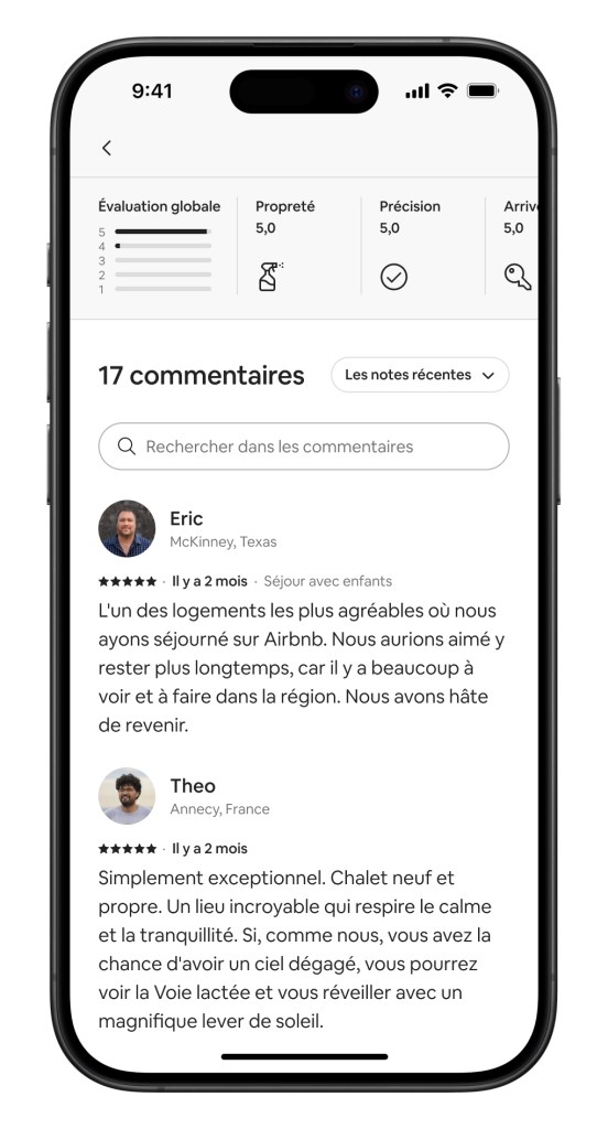 - Évaluations et commentaires repensés : une page d’évaluation améliorée, avec de nouvelles fonctionnalités pour aider les voyageurs à évaluer la qualité de chaque logement après leur séjour.