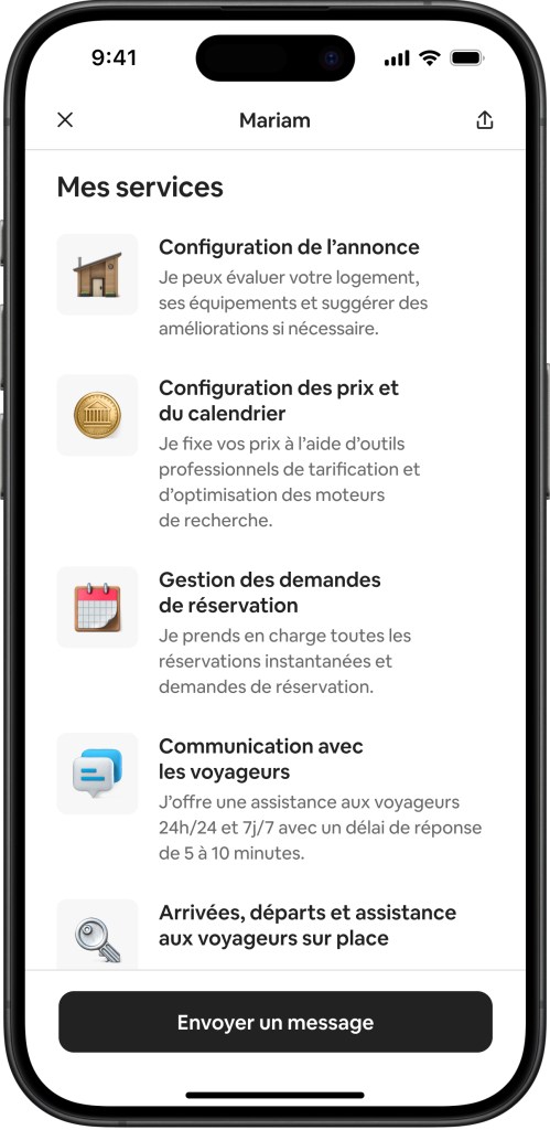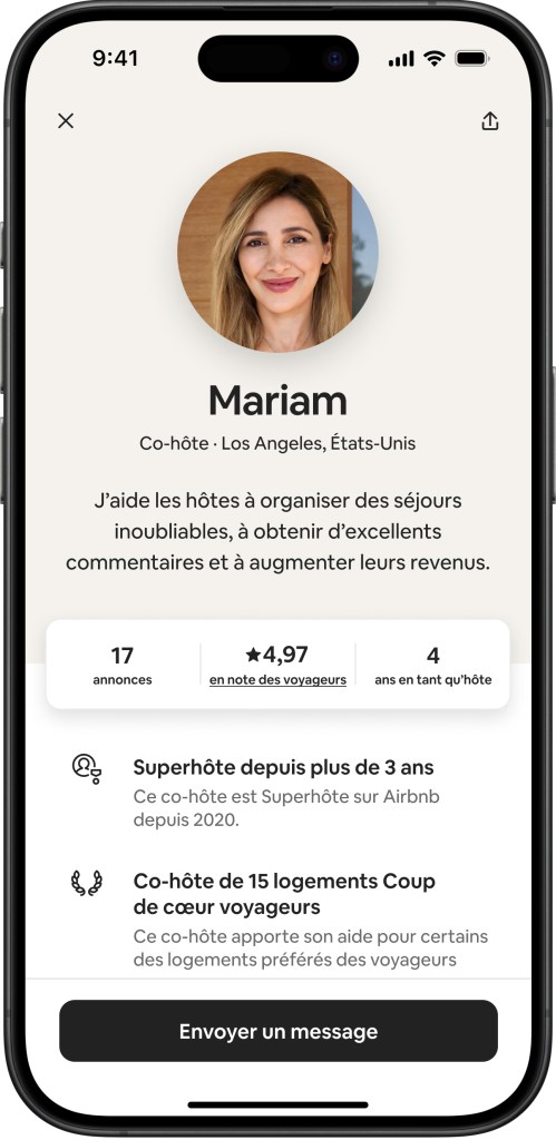 À partir d’aujourd’hui, vous pouvez facilement trouver et faire appel aux meilleurs co-hôtes locaux pour gérer votre Airbnb, directement dans l’application. Les co-hôtes fournissent une assistance personnalisée en fonction de vos besoins, allant de la configuration de l’annonce à la gestion des réservations, en passant par la communication avec les voyageurs.